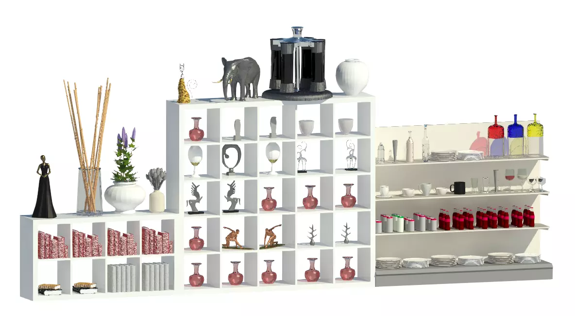 The model has material settings that define how surfaces look (color, shine, transparency, etc.).