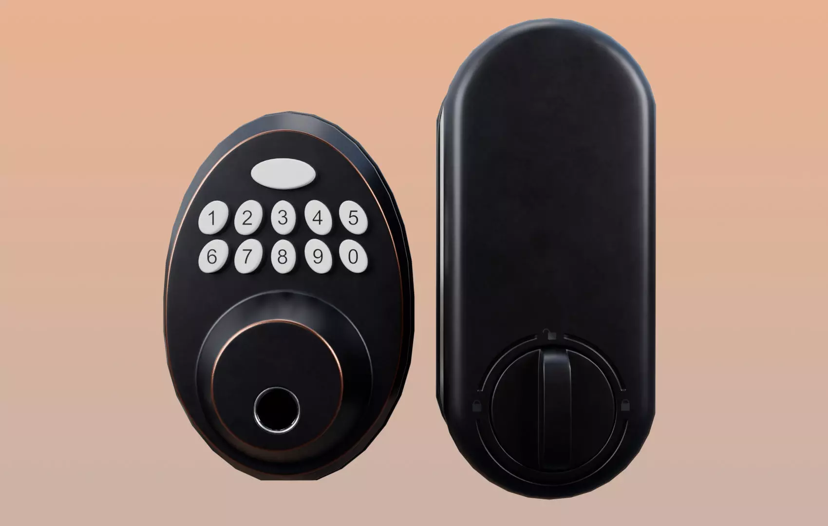 3D Modeling of an Oval Digital Door Lock with textures 4k and 2K (Base Color, Normal Map, Roughness, Metalic, Ambient occlusion)