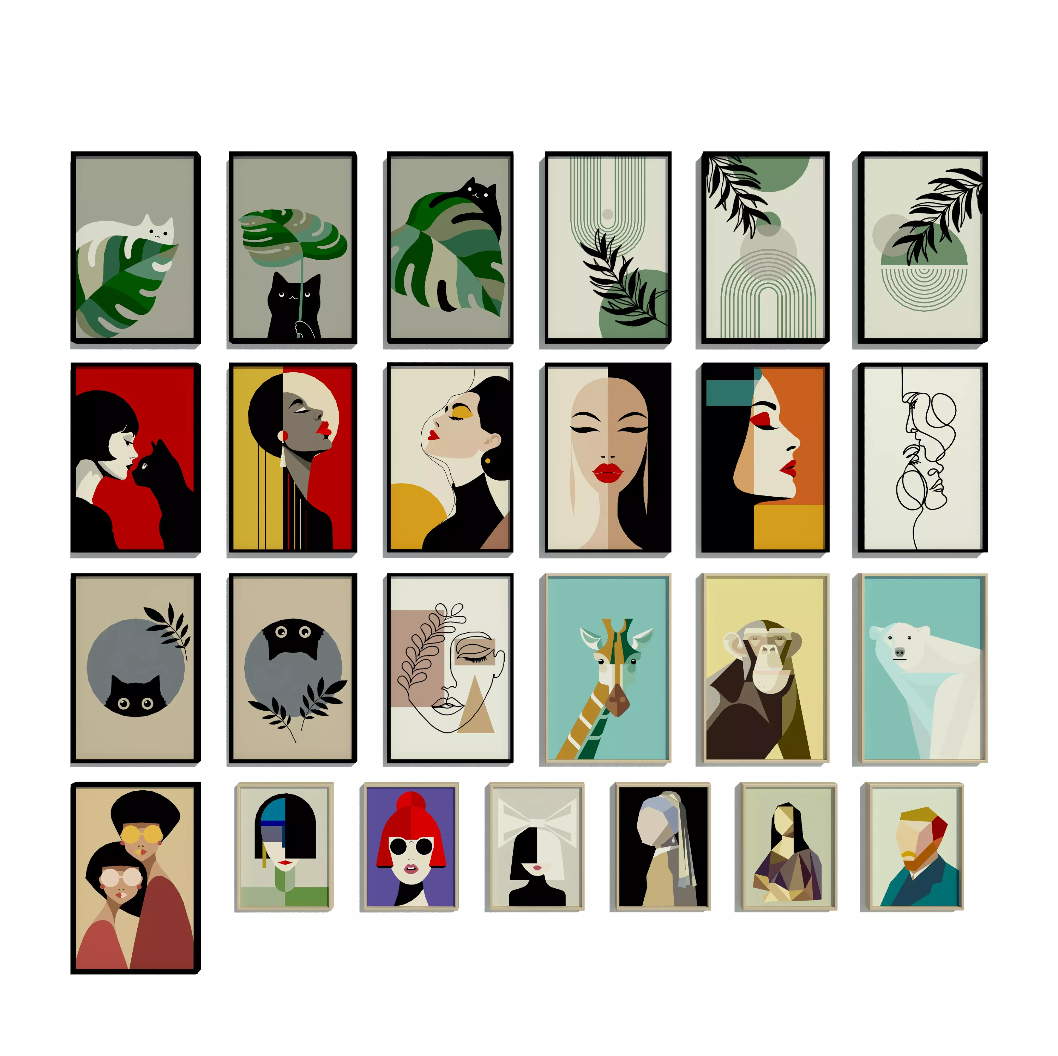 25 Wall Art Families – A mix of abstract portraits, animals, plants, and line art styles