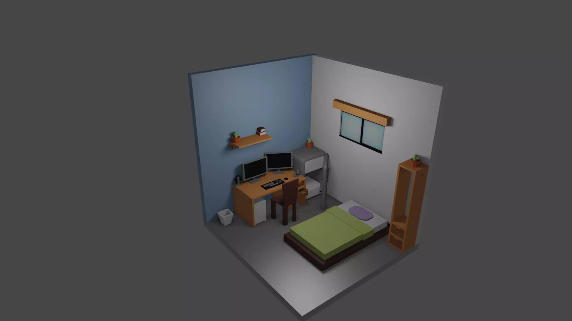 The model has material settings that define how surfaces look (color, shine, transparency, etc.).