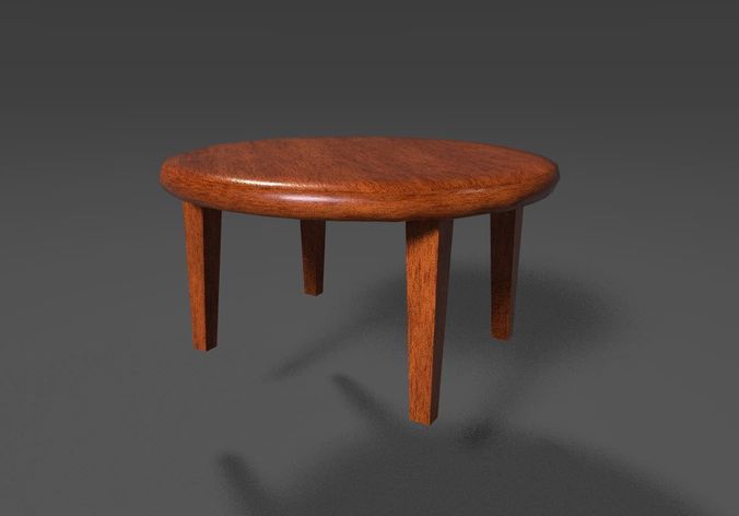 Round Oak wood kitchen table UE4 ready Low-poly 3D model
