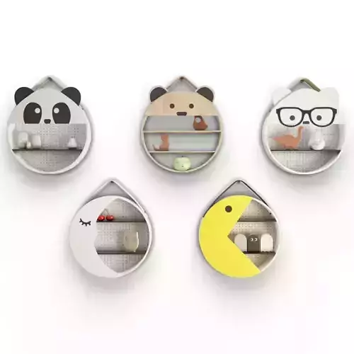 Five 3d animal shelves for a child room arrangment.