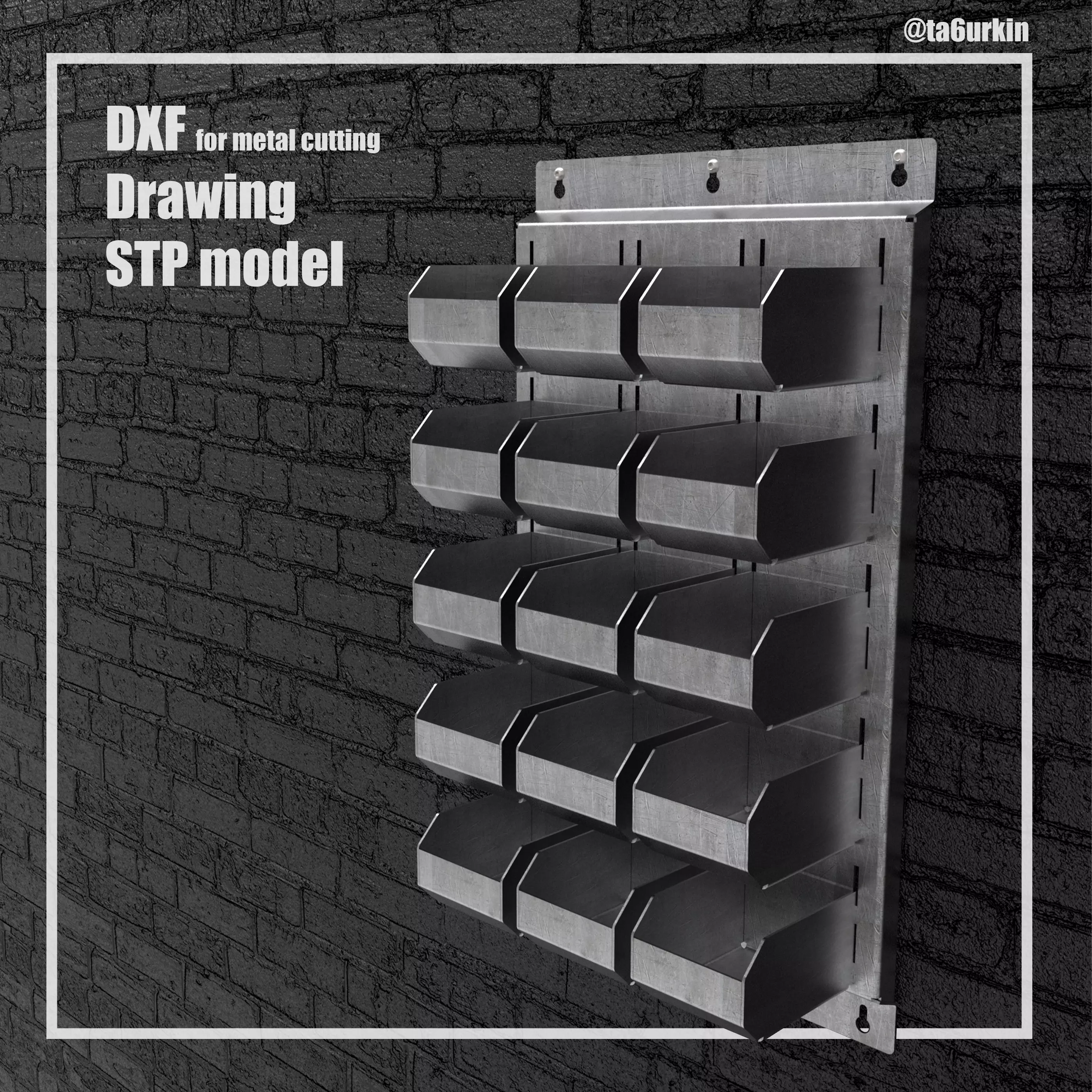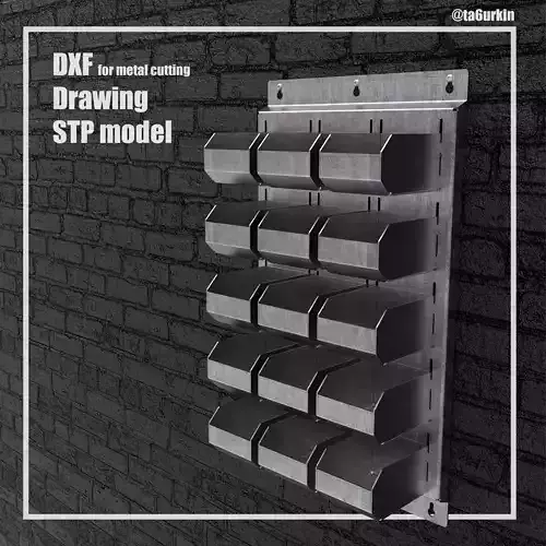This project involves the manufacture of shelves for self-use, storage of fasteners and other things. The project involves the manufacture of steel 2 mm. All dimensions are visible on the drawings in the project preview. If you want to make a project from steel of a different thickness, then it is better to edit the dxf files by expanding the grooves. If you want to edit the project in more detail, you can open the STP model in any CAD program. Before cutting out all the shelves, I recommend cutting out one, bending it, and seeing how the grooves fit together.