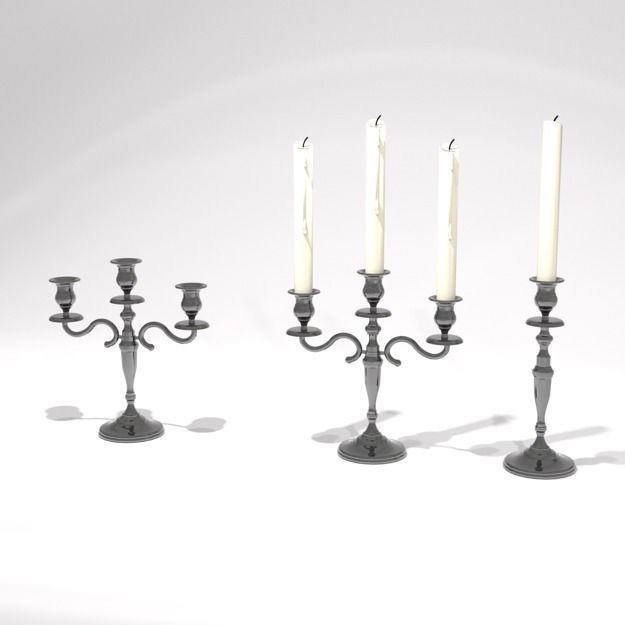 silver antique single and triple candelabra 51cm high w candles 3D model