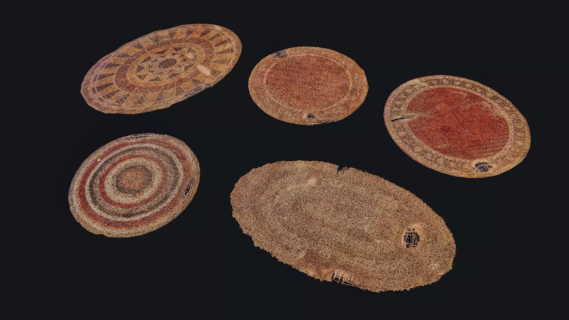 3D Model Collection Persian CarpetsThis collection features 5 high-quality 3D models of traditional oriental-style textiles: two Persian rugs and one runner. Each model is characterized by intricate ornamental detailing, realistic textures with pile simulation, and an authentic color palette reminiscent of handcrafted originals.