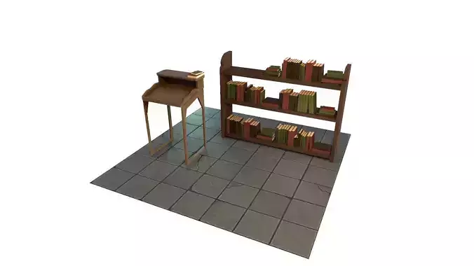 Stylized old furniture asset for fantasy cartoon library, cabinet, office, wizard of alchemist chamber or parlour. Game ready optimized low poly models with PBR textures.