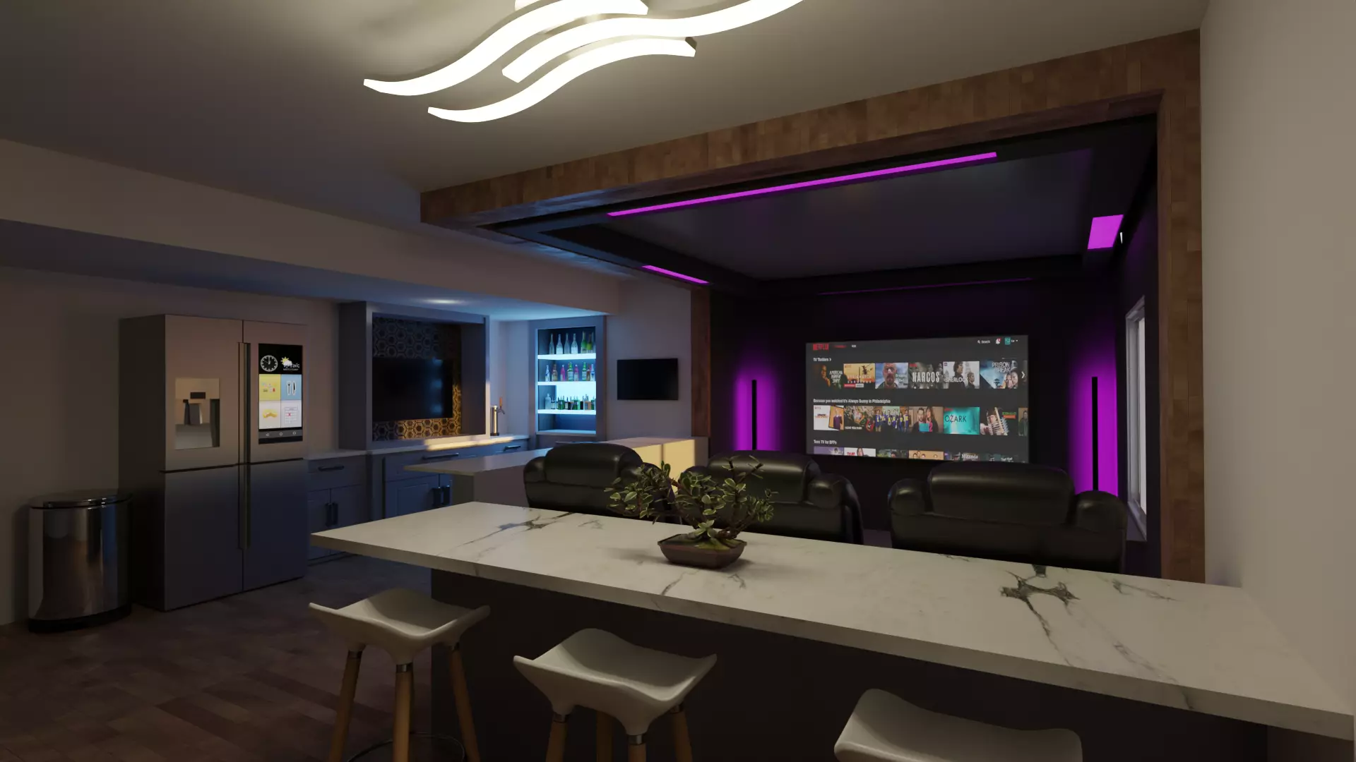 The modular design of this model allows for easy customization and integration into a variety of projects, while its realistic lighting and shading ensure a seamless and lifelike appearance. Whether you're looking to create a virtual tour of your dream home theater or an immersive scene for a video game or film, this model is the perfect choice.