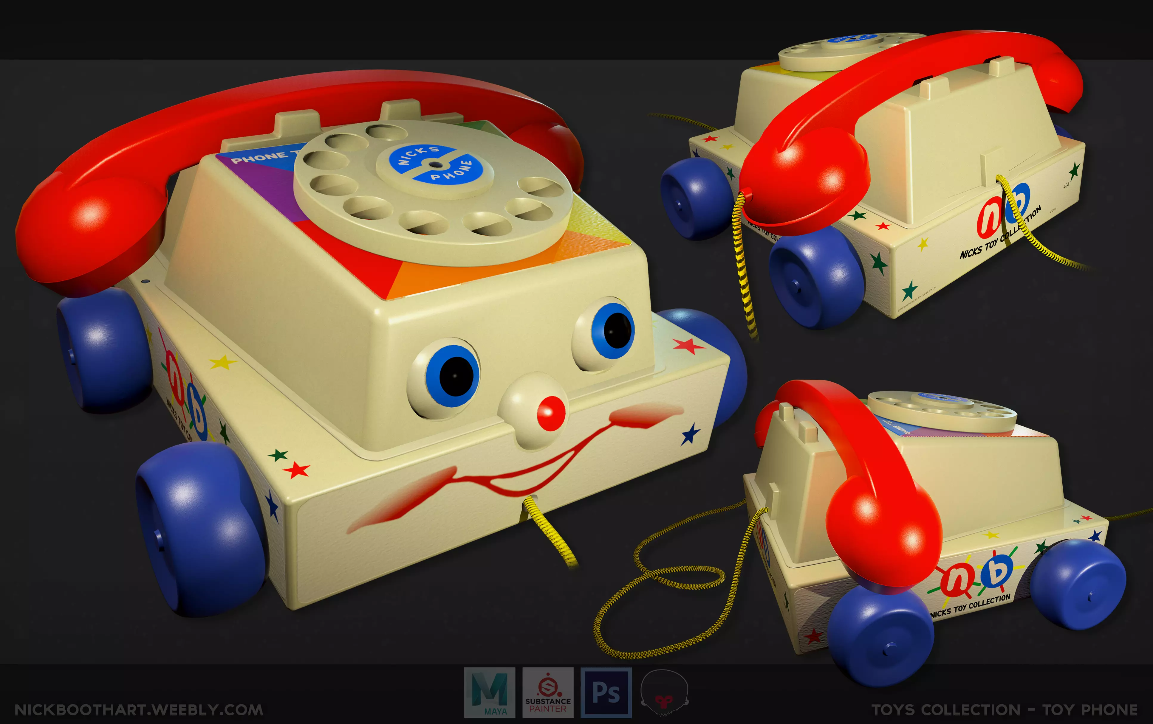 A Toy Phone 3D model that comes with an alternate worn texture set.
