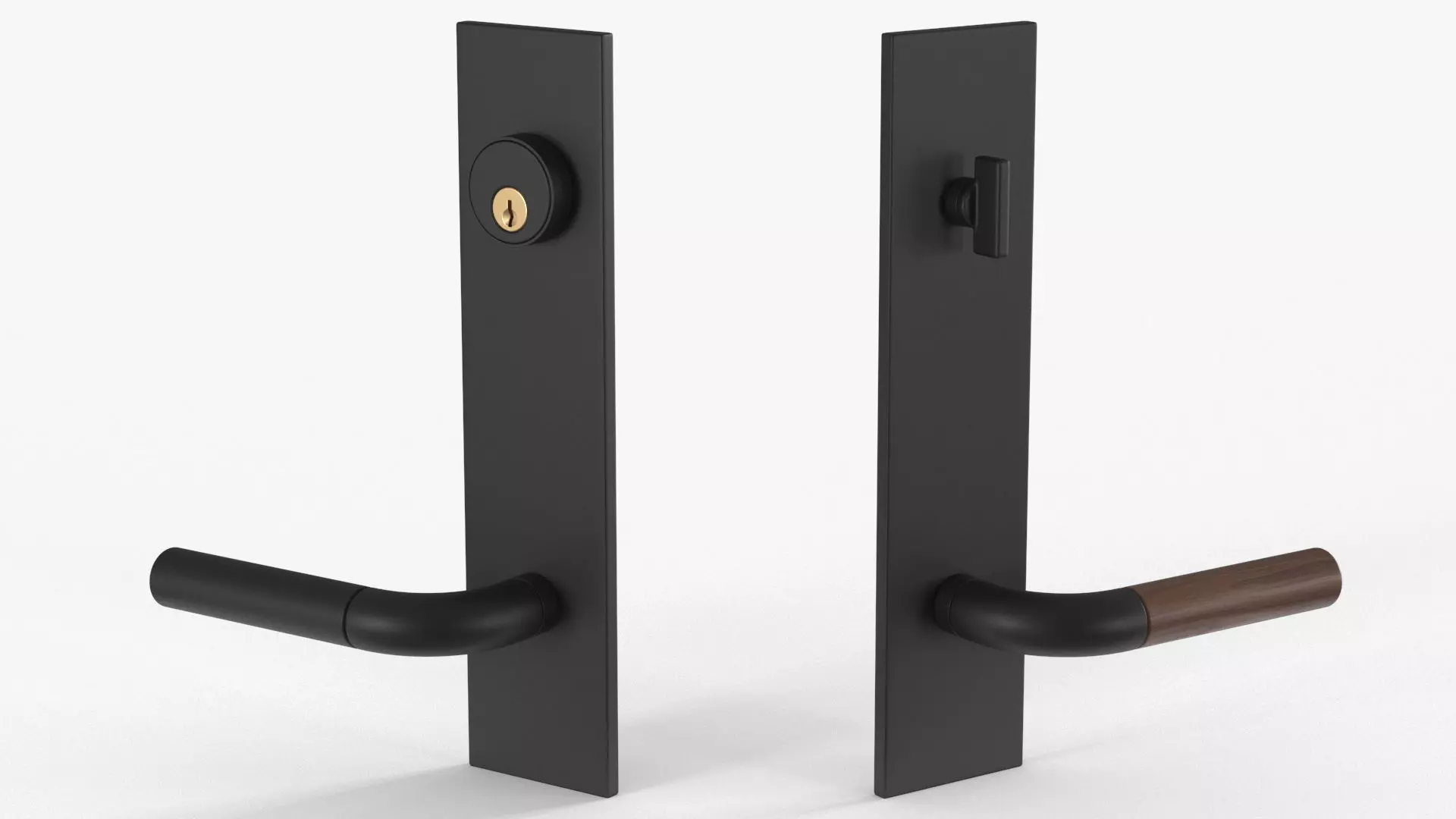 Tumalo Black Bronze with Walnut Lever Exterior Door Hardware is a high quality polygonal model for subdividing that will enhance detail and realism to any of your rendering projects.The model has a fully textured, detailed design that allows for close-up renders, and was originally modeled in 3ds Max 2017 and rendered with V-Ray. Renders don't have any postprocessing.