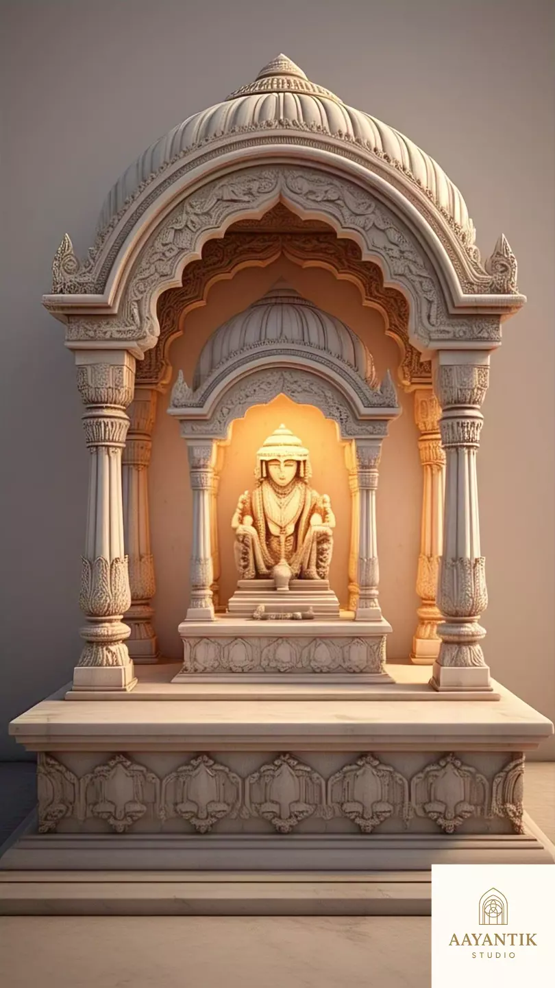 Its proportions are based on traditional Vastu measurements, ensuring compatibility with other home layout elements. Whether used in a full pooja room setup or as a featured wall element, the Vastu Temple Niche elevates spiritual aesthetics and spatial energy, honoring cultural principles with modern 3D precision.