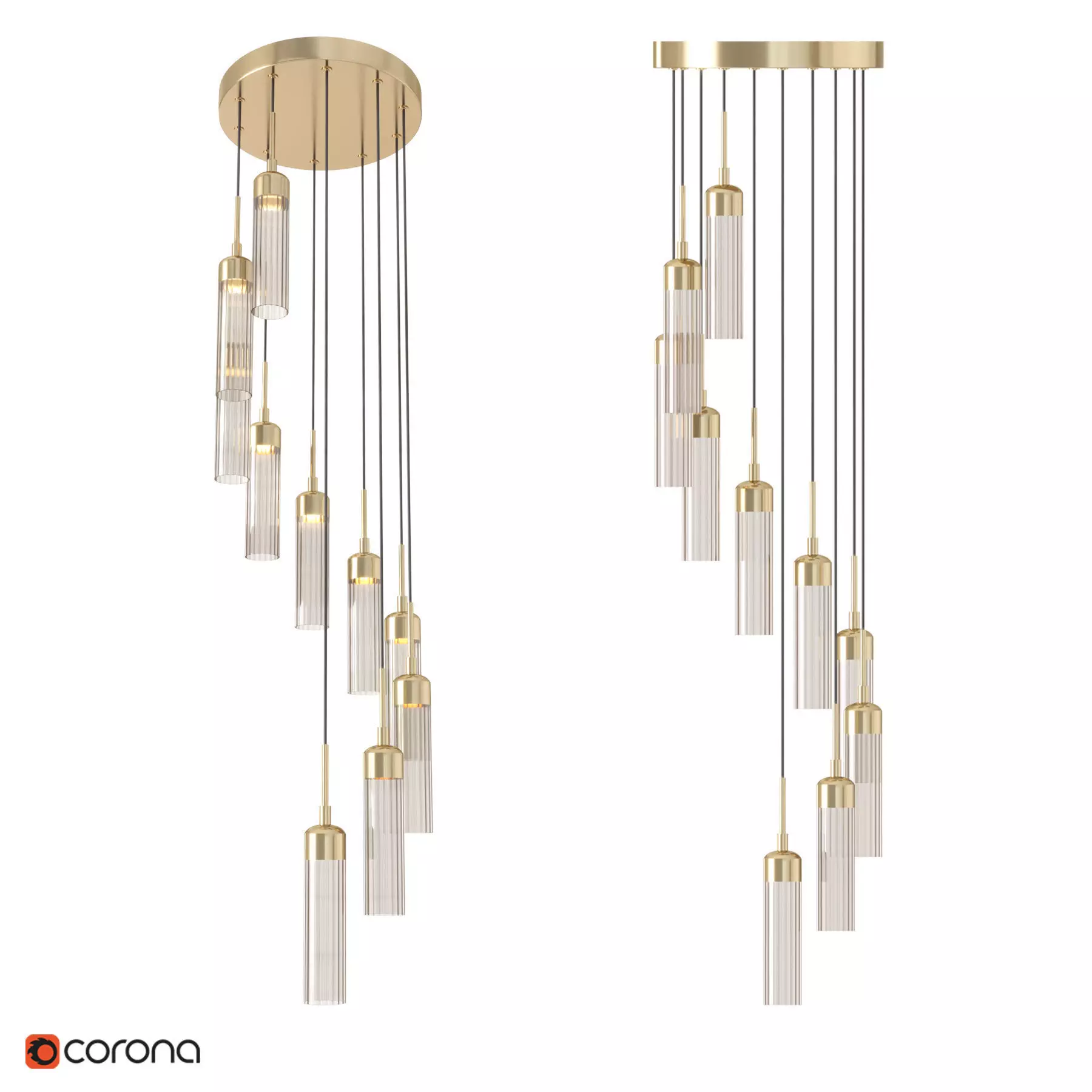 Verona - LED 10 Light Chandelier Ceiling lamp, Brushed brass and smoked glass