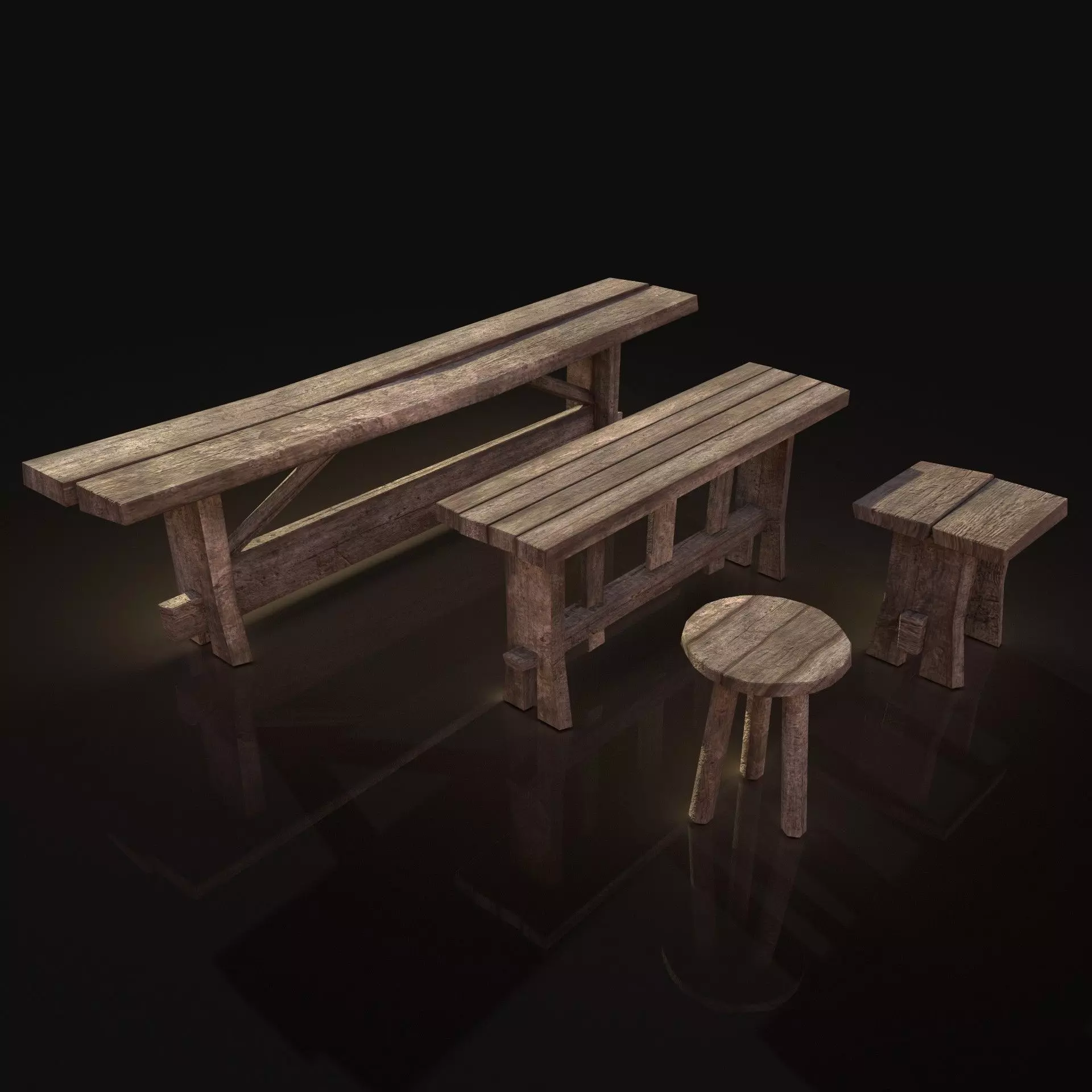 Next Gen AAA Village Benches and Stools Pack Low-poly 3D model