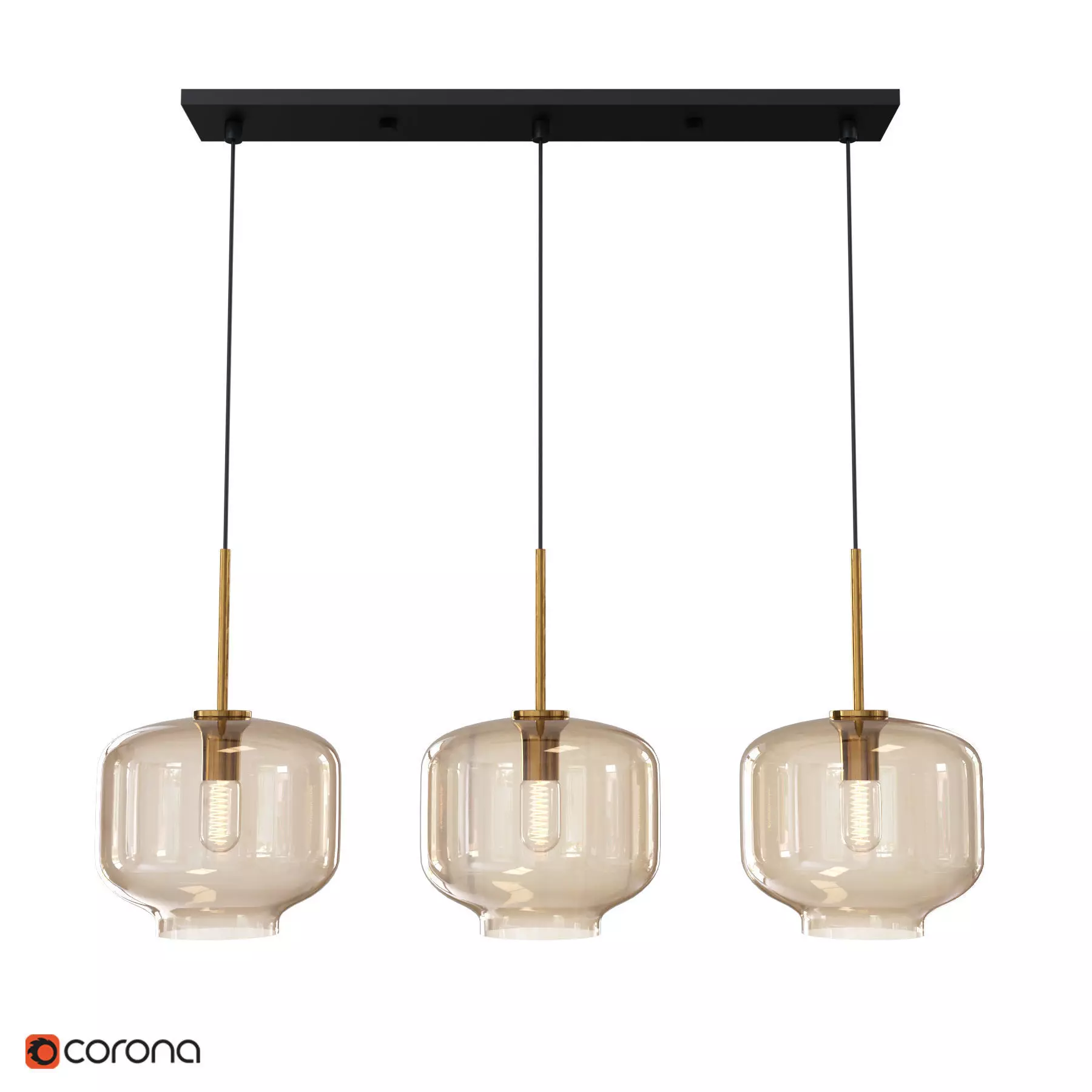 VILMO TRIO Model H - Glass pendant light combinations on a common ceiling mount. Execution color - amber.
