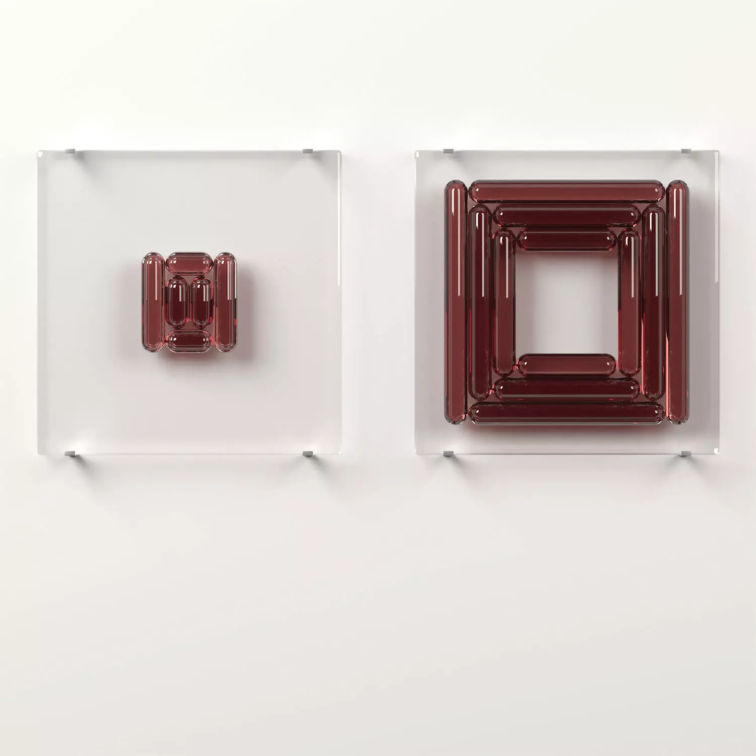 A collection of wall decorative glass blocks.A mix of different shapes, prisoned in a glass block.9 Colors are included in the MAX Scene.