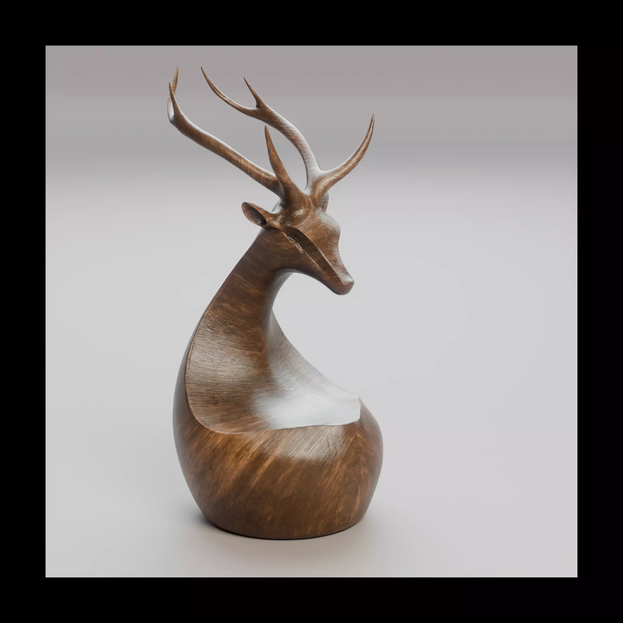 This stylized wooden deer sculpture 3D model features an elegant hand-carved aesthetic with smooth curves and elongated artistic proportions. Designed to resemble modern luxury home decor, it adds a calm and minimalistic touch to any interior scene.