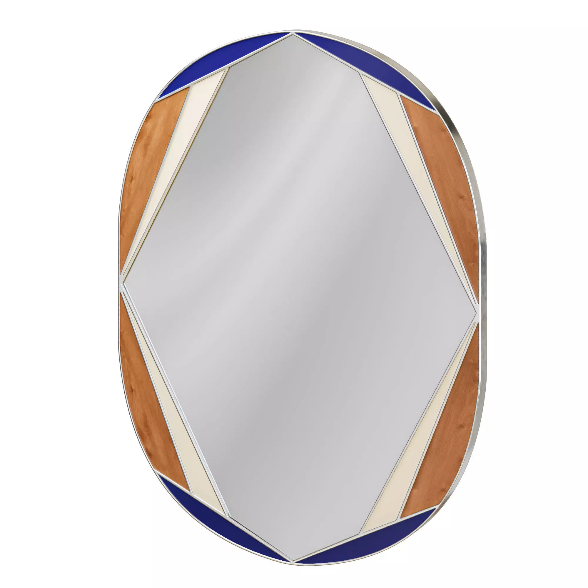 Oval wall mirror with irregular frame with elements in mango wood, metal and lacquered resin.Can be mounted vertically or horizontally.