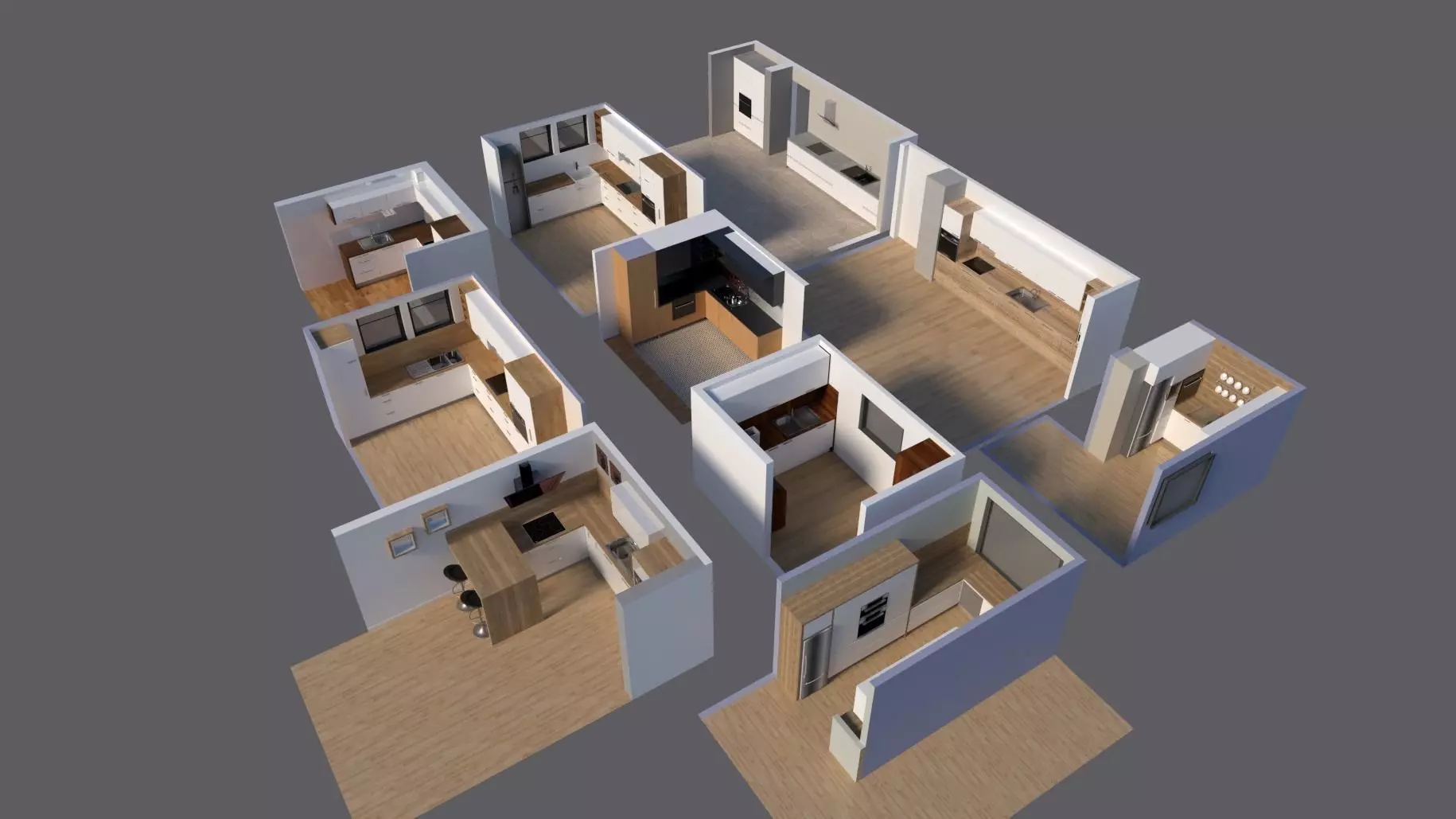 The model has material settings that define how surfaces look (color, shine, transparency, etc.).
