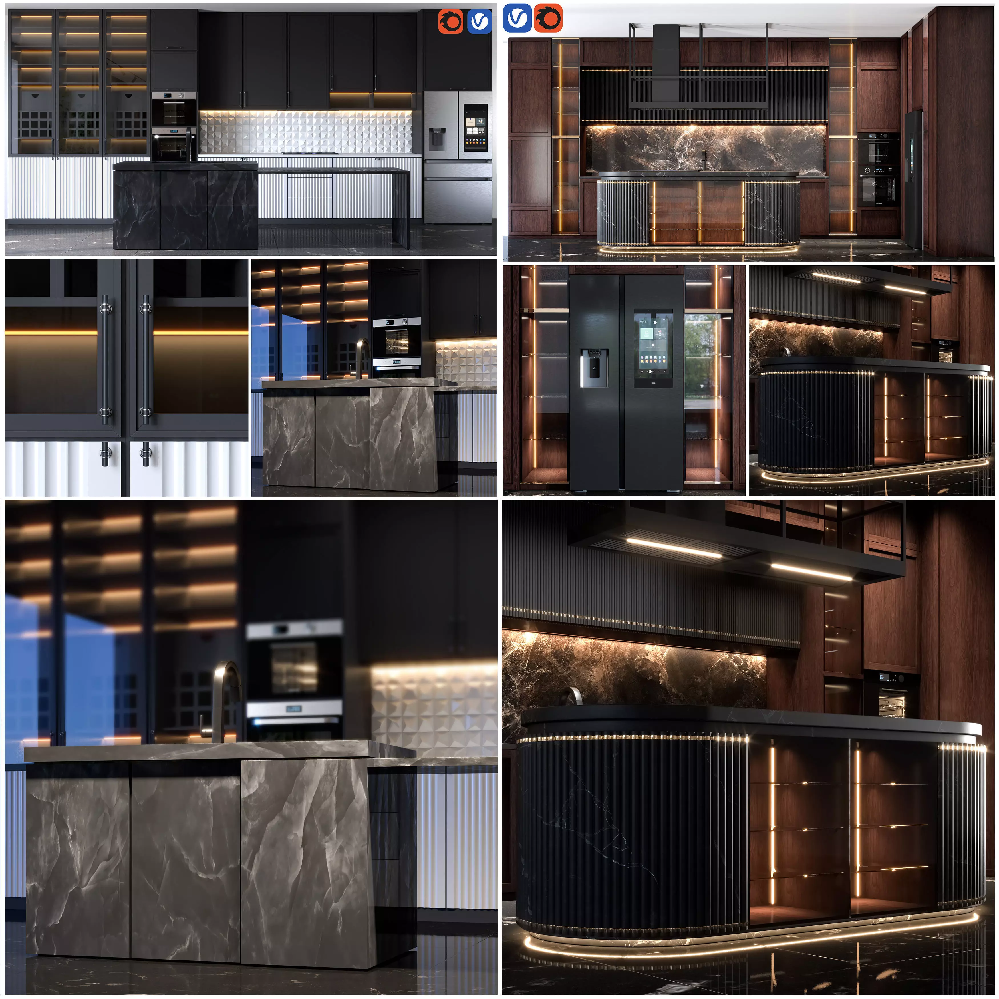 In the kitchen there are: cabinets, faucet, sink,induction cooker, oven.refrigeratorPlatform: 3dsMax 2016 + objRender: Vray+CoronaSize: 106 MBPolygons: 710KLength: 631 smWidth: 381 smHeight: 290 smStyle: ClassicMaterials: Glass, Stone