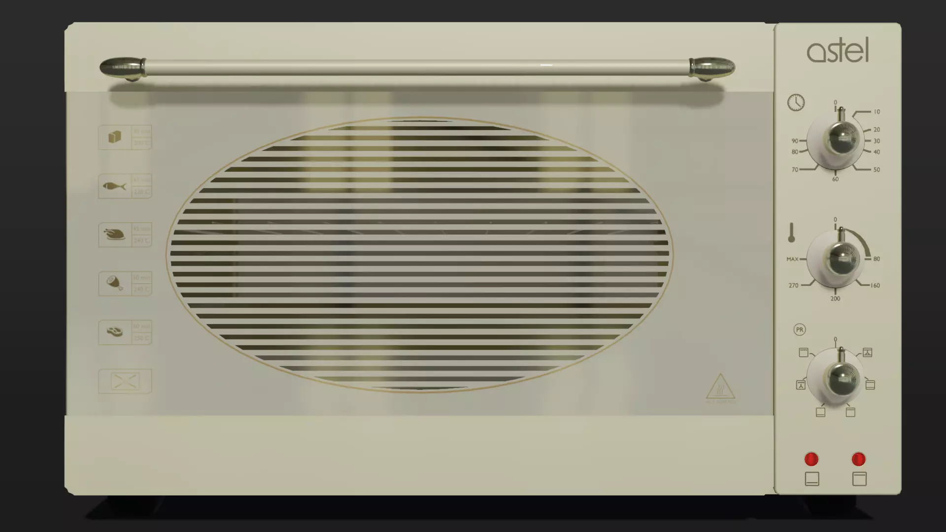 Special inner coating of the mini ovenAstel mini-ovens have a special inner coating on which no scratches remain even at prolonged high temperatures. Thanks to the smooth surface, cleaning Astel mini ovens is a pleasure. Special inner coating of the mini ovenMini oven lighting lampThe lighting lamp is an additional convenience that allows you to fully assess whether your dish is cooked. Thanks to the lamp installed in the mini-oven, you will never have any inconvenience even in low light conditions. Mini oven lighting lampMini oven convectionMini ovens with convection cook dishes and pastries quickly and evenly due to the distribution of hot air by a fan. Mini oven convectionMini oven sound timerAt the end of the cooking process, a sound timer is triggered at the Astel mini-ovens, notifying that the dish is ready and can be served on the table.