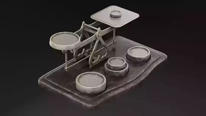 This 3D model showcases a classic balancing scale, meticulously designed with fine details, featuring two symmetrical pans suspended from a central beam. The scale has a polished metallic finish, with realistic textures and intricate engravings, adding a sense of authenticity and sophistication. Available in BLEND, OBJ, and DUF formats, this model is ideal for use in legal-themed visuals, educational materials, or decorative 3D scenes. Its photorealistic design and precise detailing make it a standout addition to any project requiring a symbol of balance and justice.