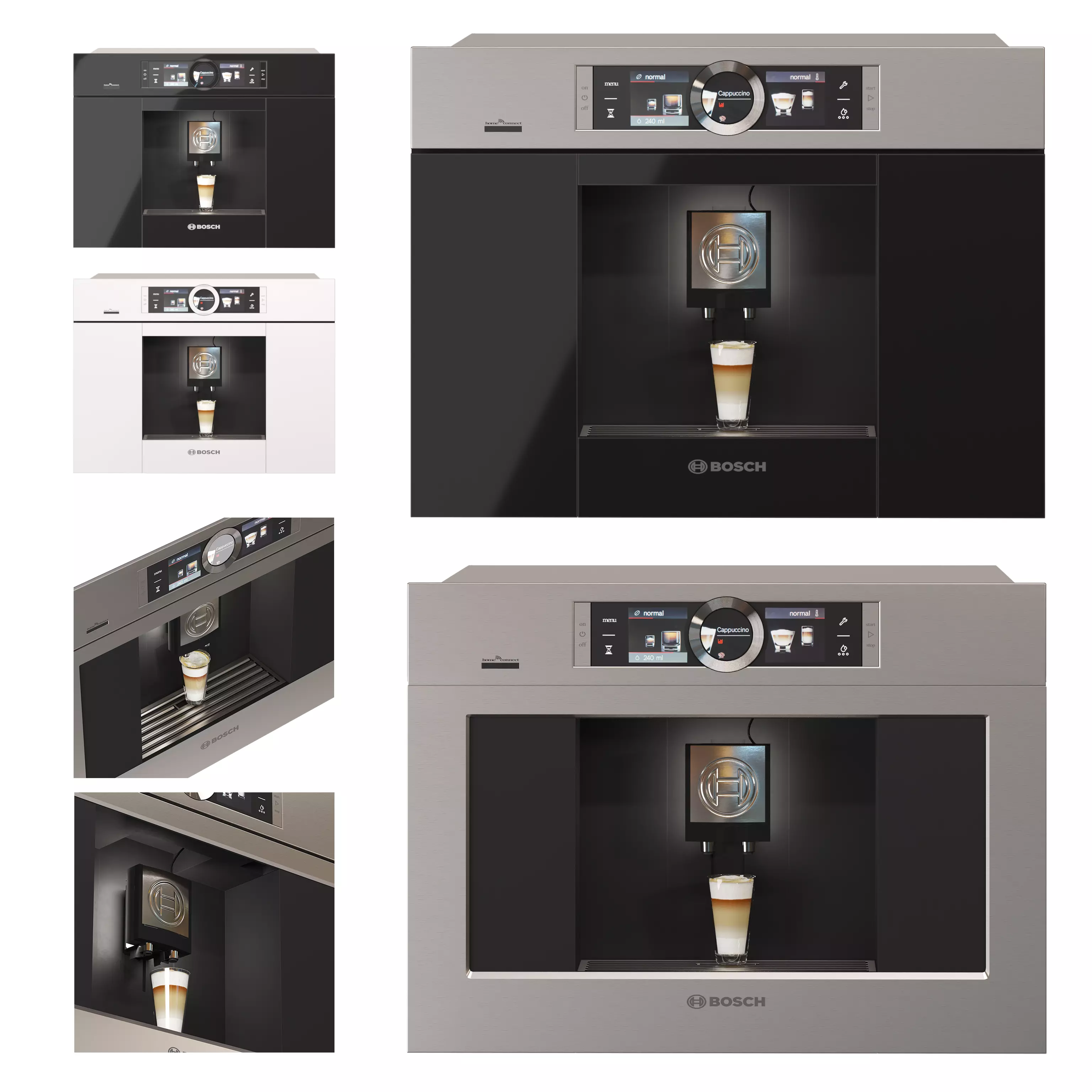 Bosch Coffee Machine Series 8 Collection contains:1-Coffee Machine 800 Series Built-in Stainless steel_BCM8450UC (60 x 45 cm)2-Coffee Machine Series 8 Built-in Fully Automatic Stainless Steel and Black glass_CTL636ES63-Bosch Coffee Machine AccentLine Carbon_CTL836EC6( 2 color,Black & White Glass)you can change Bosch Coffee Maker material by 2 spheres beside its model in file.4-A glass of Cappuccino (with high quality and attractive materials)