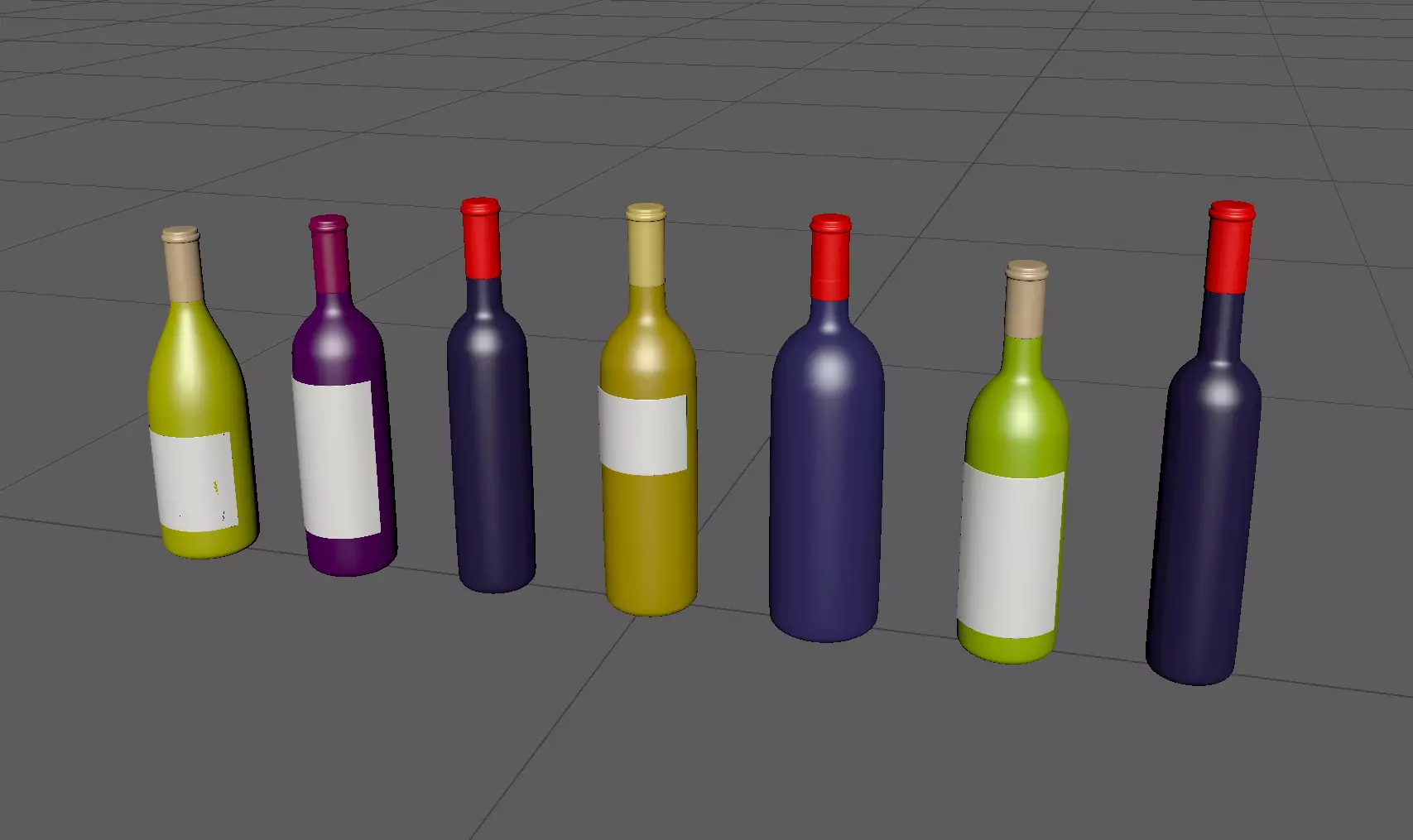 BottleB high-poly model group of different colored wine bottles 3D model