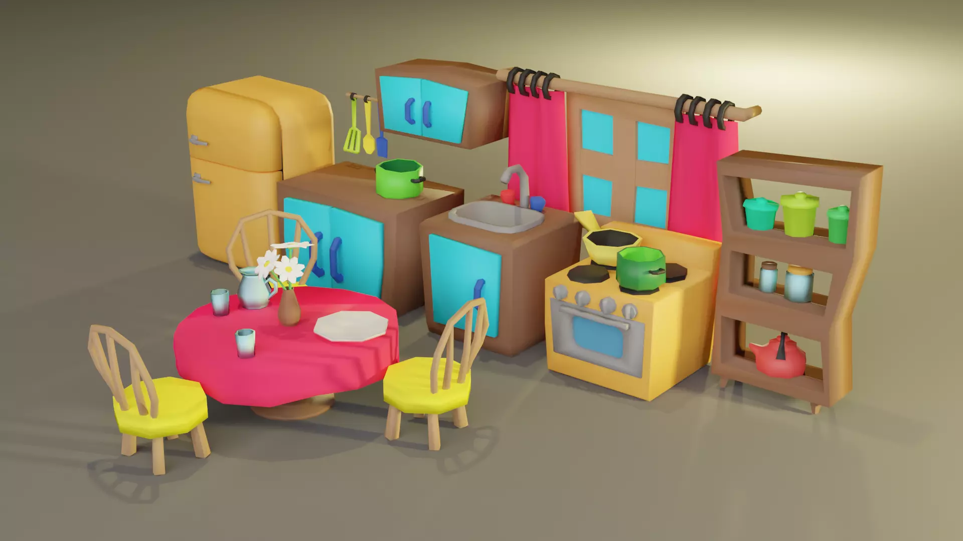 The model has material settings that define how surfaces look (color, shine, transparency, etc.).