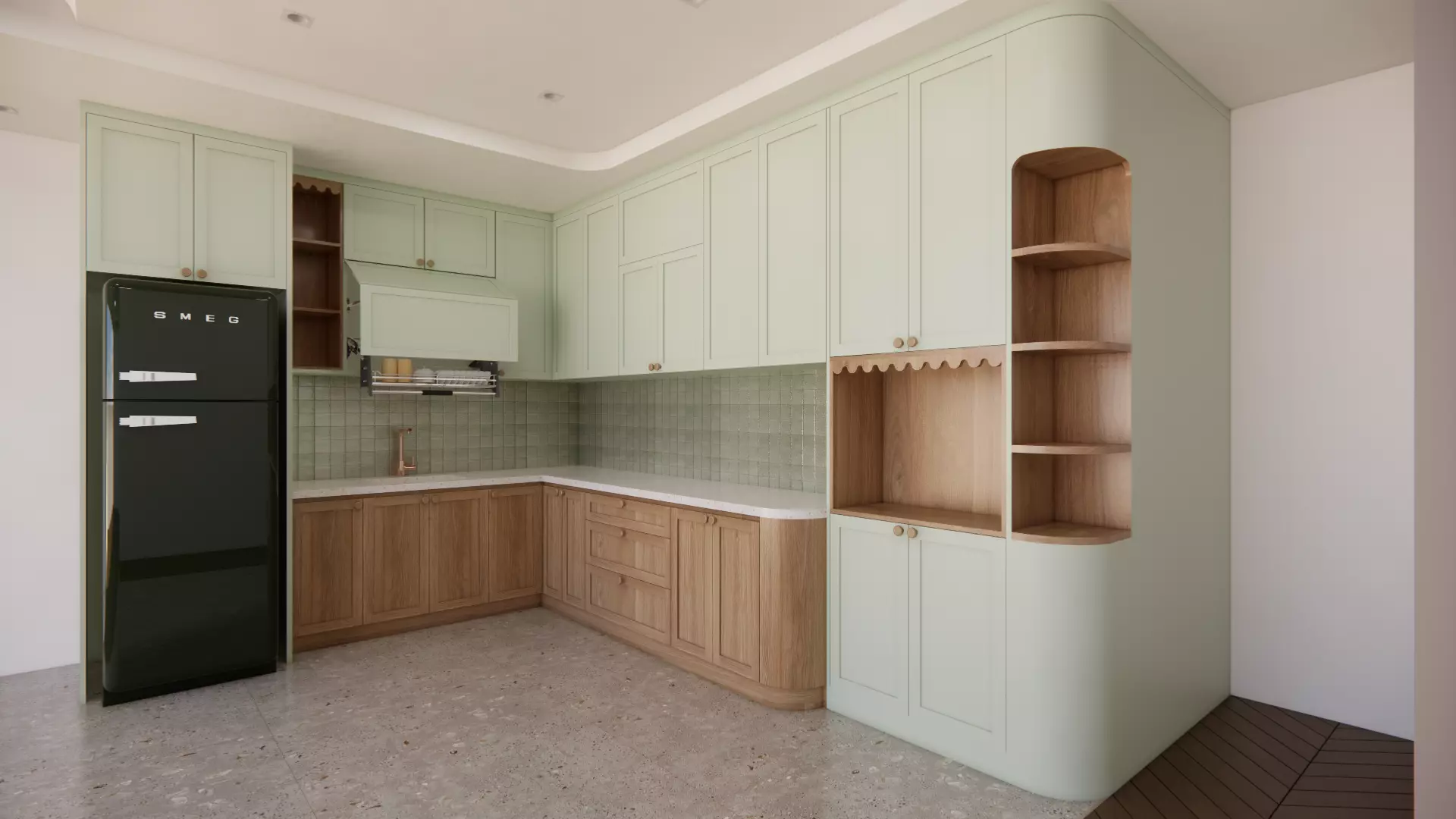 This Classic L Shape Kitchen Cabinet SketchUp model features a soft pastel green and warm wood combination, inspired by modern classic and Scandinavian interior styles.The layout is optimized for small to medium kitchens, offering efficient storage while maintaining a clean and elegant appearance. Rounded corners, classic panel doors, and open shelf details add realism and character to the design.This model is ideal for:Interior designersArchitects3D visualization artistsReal estate presentation projectsDesigned to match and complement other classic kitchen models in the same collection, making it easy to build a complete kitchen set.Unit mmFile Sketchup, OBJ, FBXImportant Notice:The refrigerator, kitchen appliances, dish rack, decorative accessories, tableware, and other props shown in the render images are for presentation purposes only and are NOT included in the downloadable files.Only the kitchen cabinet furniture model is included.The cabinet layout is optimized for residential interiors, suitable for modern classic and Scandinavian-style kitchens. Clean geometry and realistic proportions make it easy to customize for different projects.This model is created to match other classic kitchen cabinet models in the same collection for consistent design across multiple scenes.FEATURESKitchen cabinet furniture onlyAppliances and decor NOT includedClean geometry and organized groupsReal world scaleEasy to modify materials and layoutOptimized for interior visualization