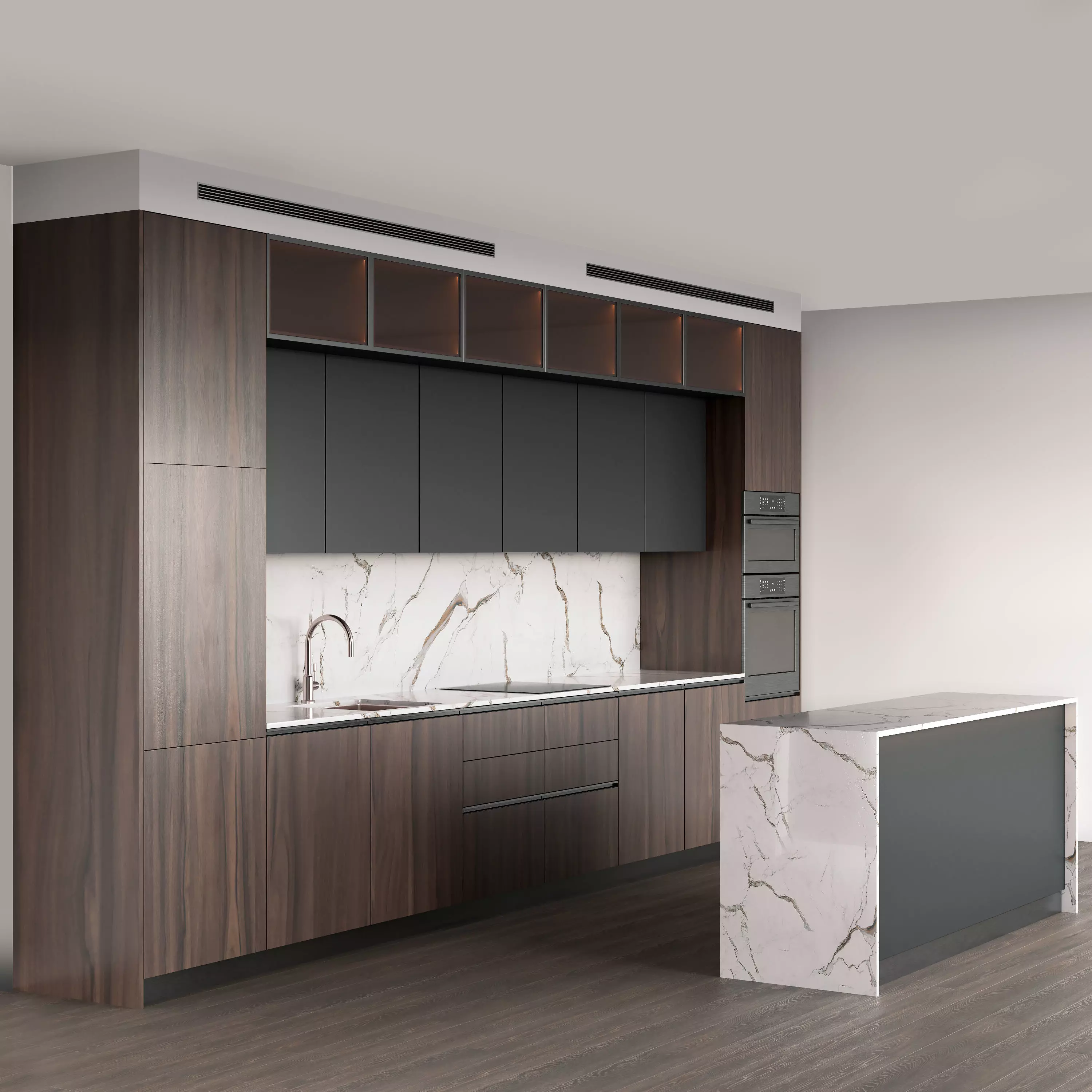 Contemporary wooden kitchen 3D model