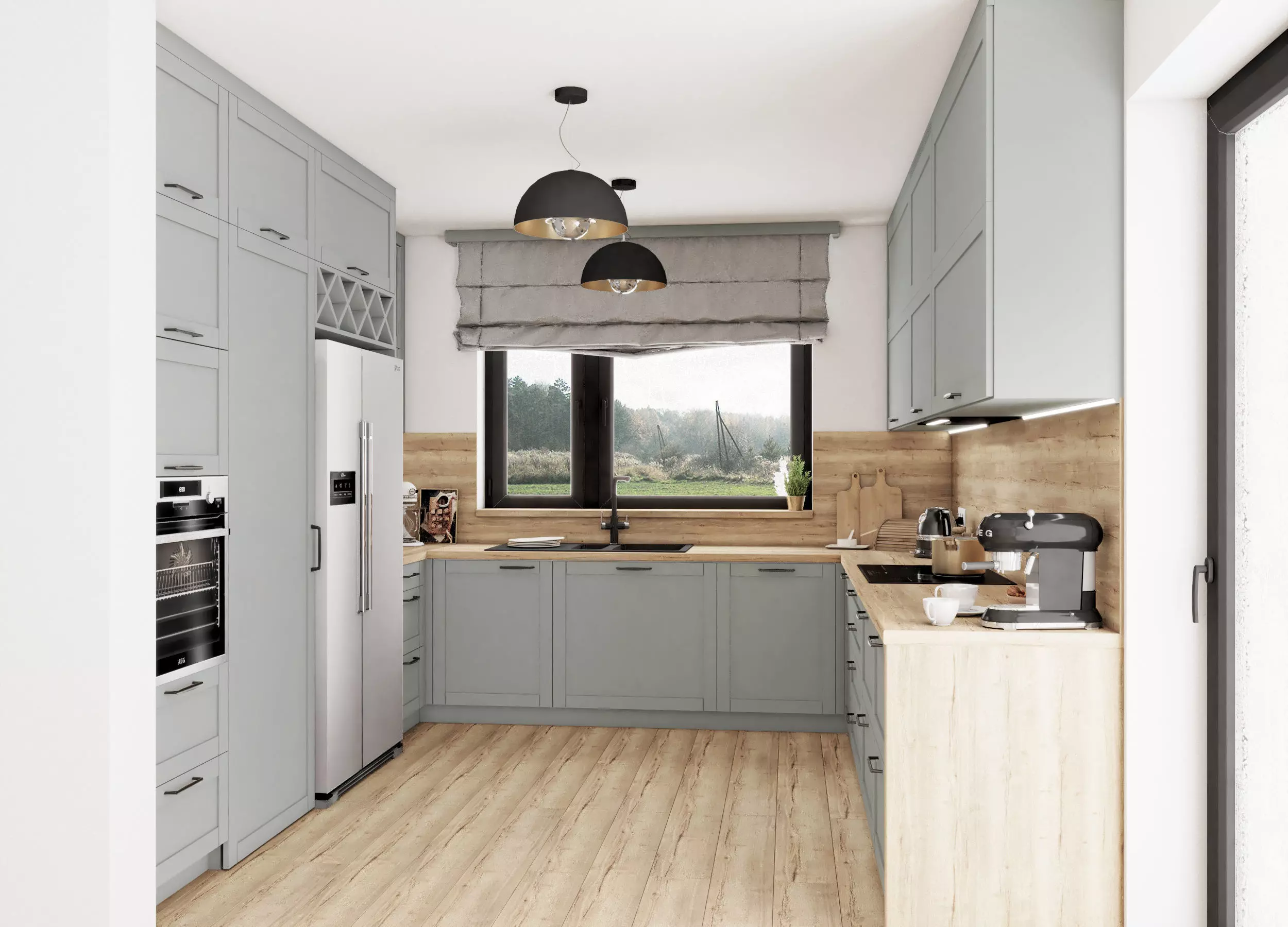 Realistic Grey Kitchen created by Vimko Interior DesignThis Grey Scandinavian Kitchen is a photorealistic, high-quality 3D model,which can be used in the game industry and in production also for furniture companies.Please note that final effect is with a bit of post production in photoshop (20 mins tops) ;)