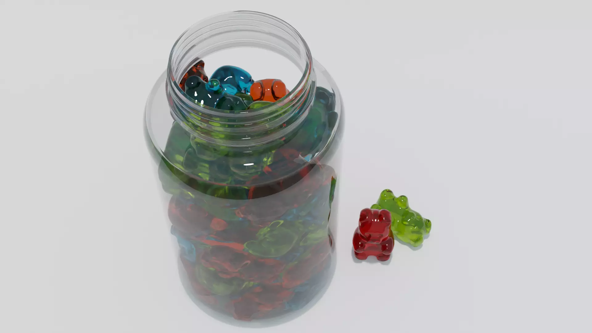 Gummies With Jar 3D Model Download | 3D Jar | Gummy 3D ModelThis Model inlcude realistic jar with gummies in different colorsThis Model is available in all Formats Like - .Blend , .fbx , obj , gltf/mtl , daeThis model is made in blender.