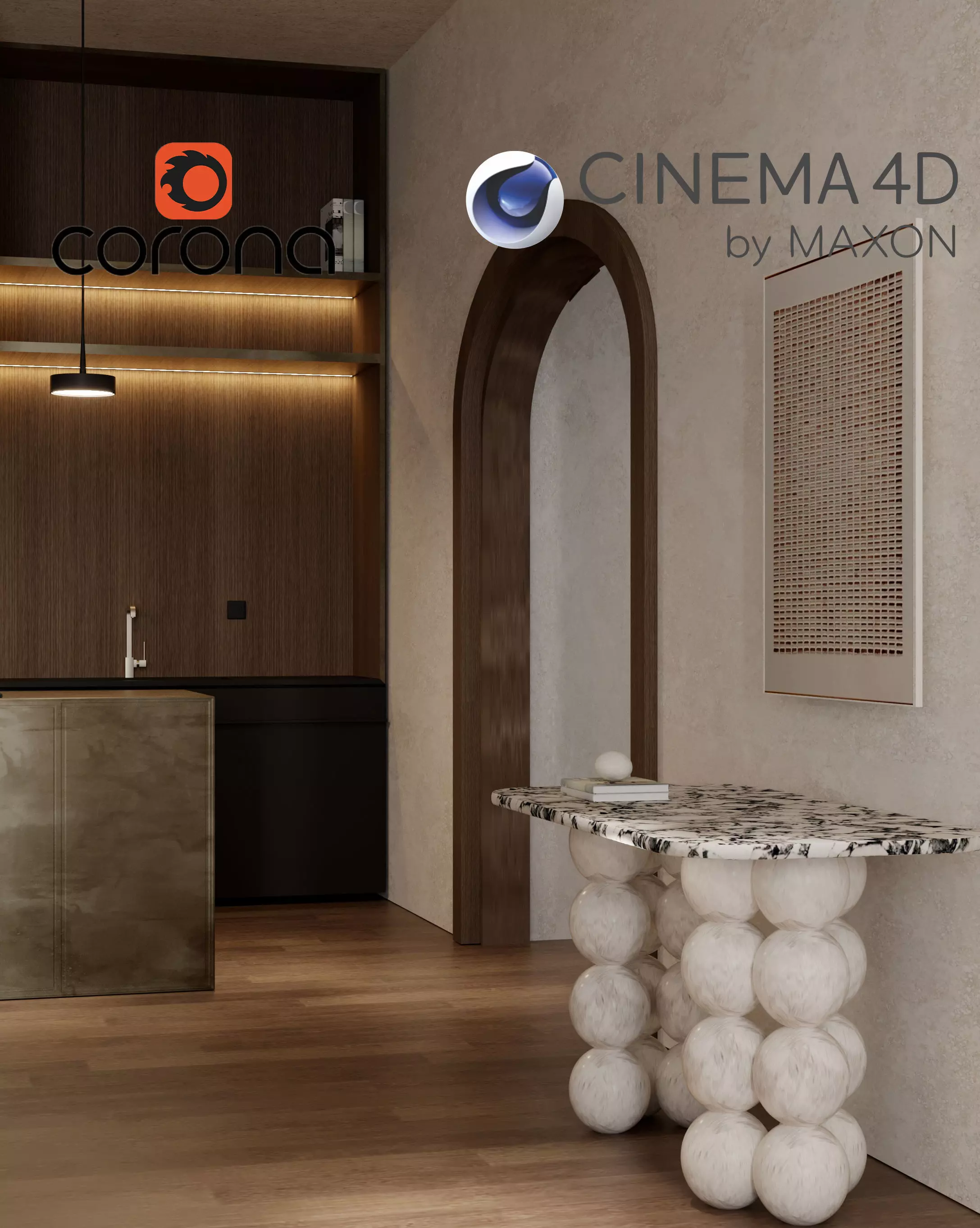Modern Kitchen & Console Interior Scene | Cinema 4D + Corona Renderer