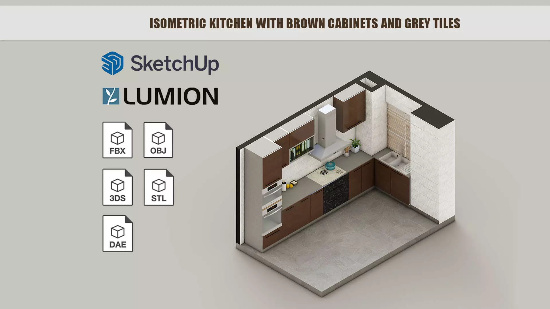 A white, grey and brown kitchen is sophisticated and grounded! The scheme was put together to evoke warmth, security, and earthiness. The combination breathes life into this miniature 3d kitchen. The isometric kitchen model has multiple built in features concealed by waterproof laminates. The kitchen has an ample space for storing, preparing and cooking.