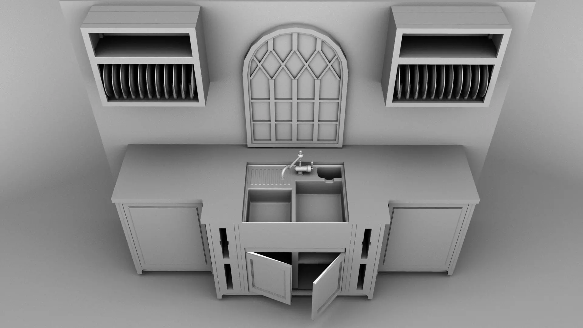 The model has material settings that define how surfaces look (color, shine, transparency, etc.).