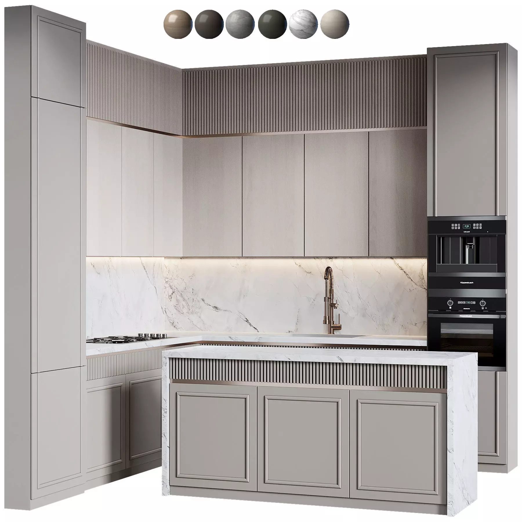 The model has material settings that define how surfaces look (color, shine, transparency, etc.).