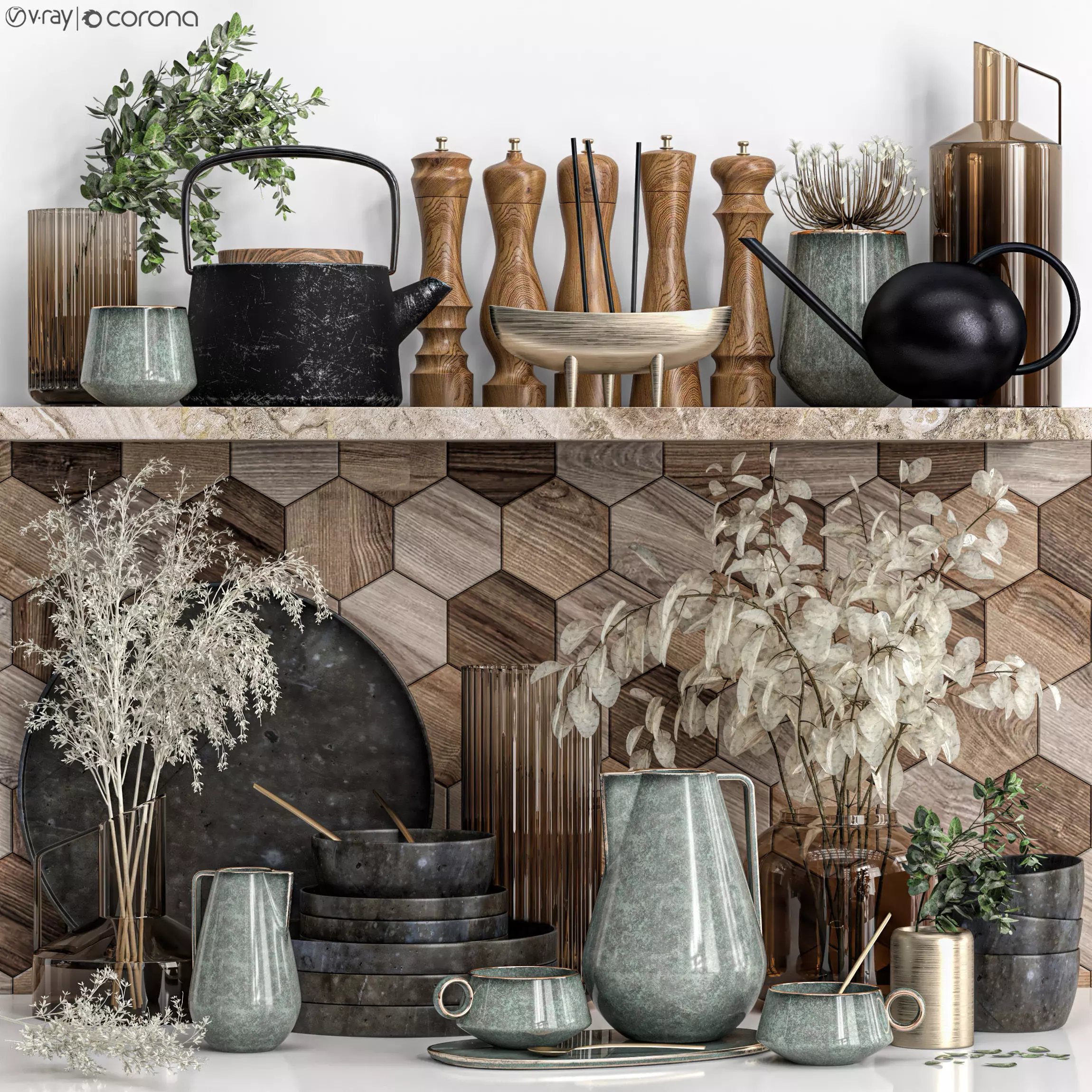 The model has material settings that define how surfaces look (color, shine, transparency, etc.).