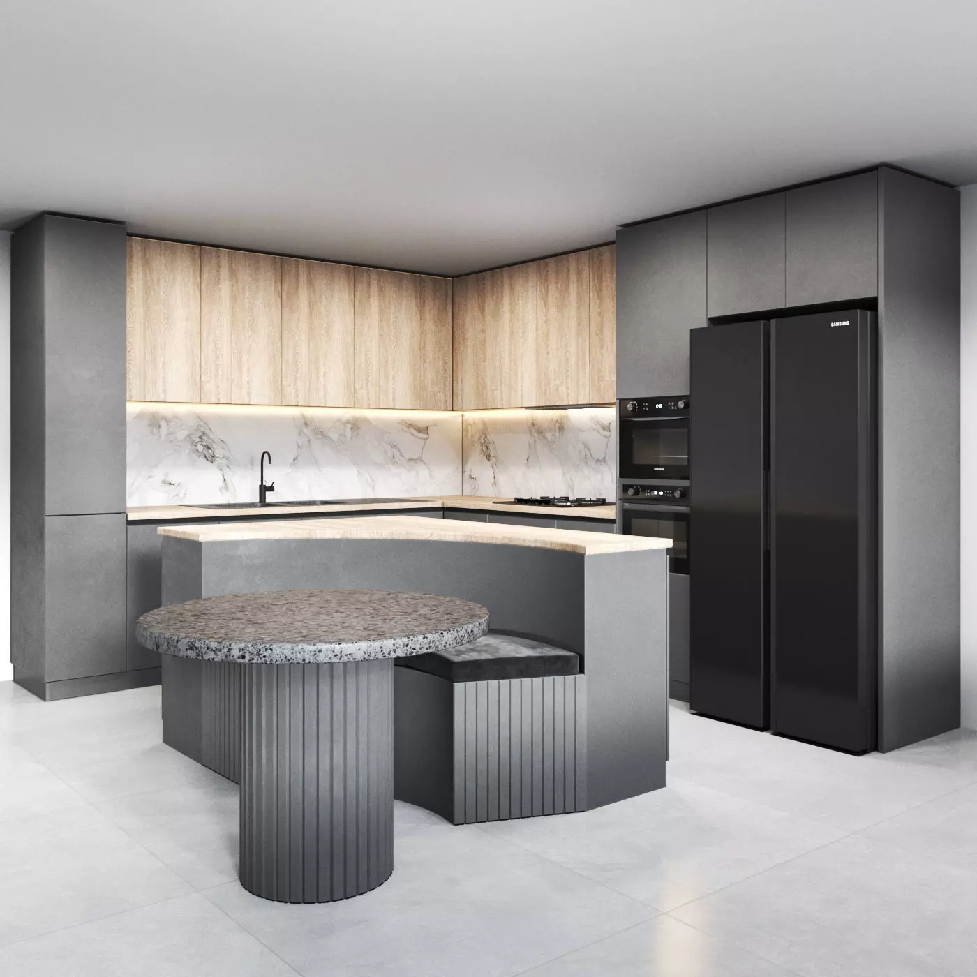 Kitchen design,modernstyle, dark them. cupboard design with island , table and chair for serving. with whole kitchen equipments for home. wish you great renders!Version: 2017Units: CentimetersDimension: 358 x 365 x 235Polys: 119 809verts: 112518XForm: YesBox Trick: NoModel Parts: 14Render: vray + coronaFormats: 3Ds Max 2017, OBJ,
