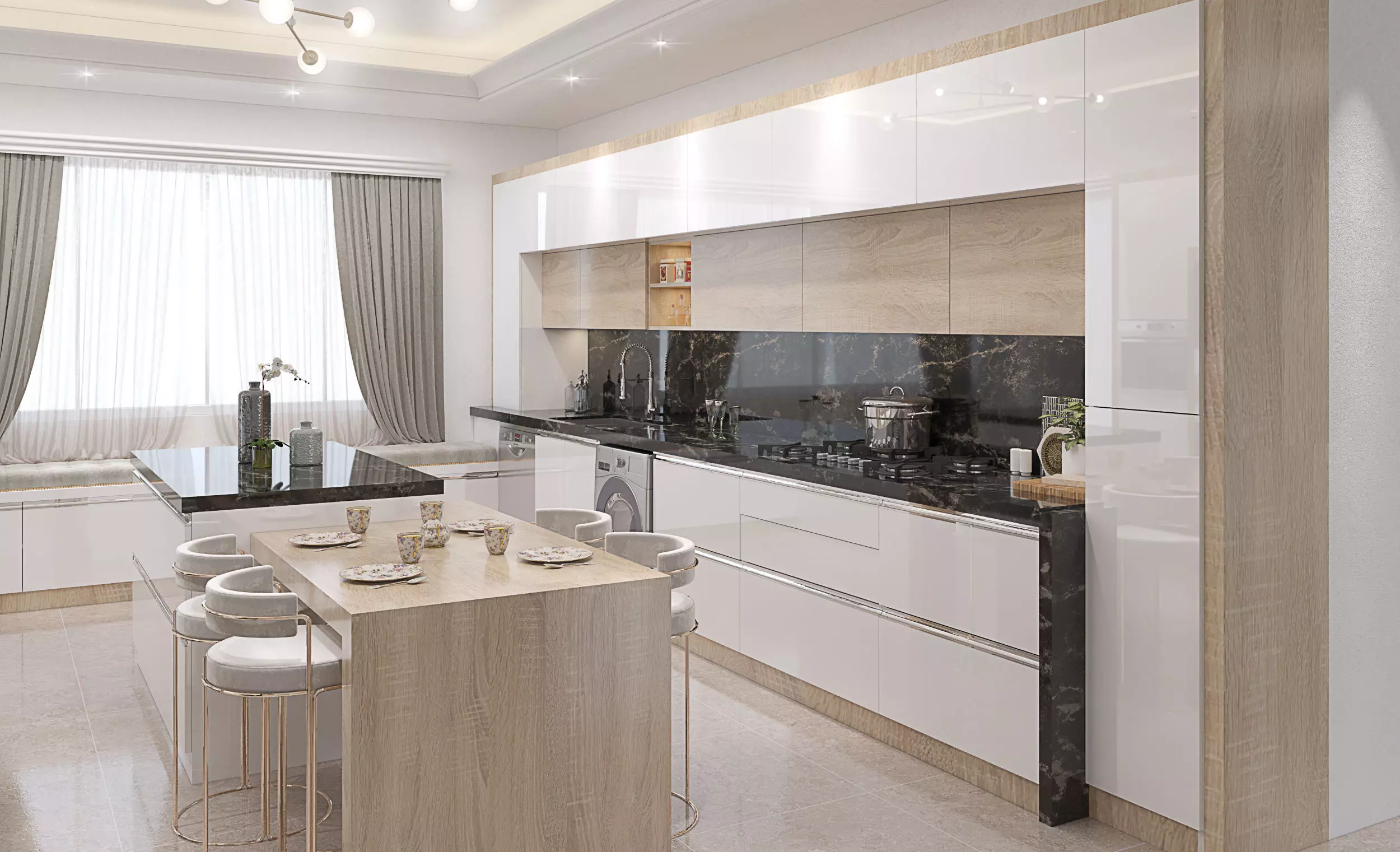 The model has material settings that define how surfaces look (color, shine, transparency, etc.).