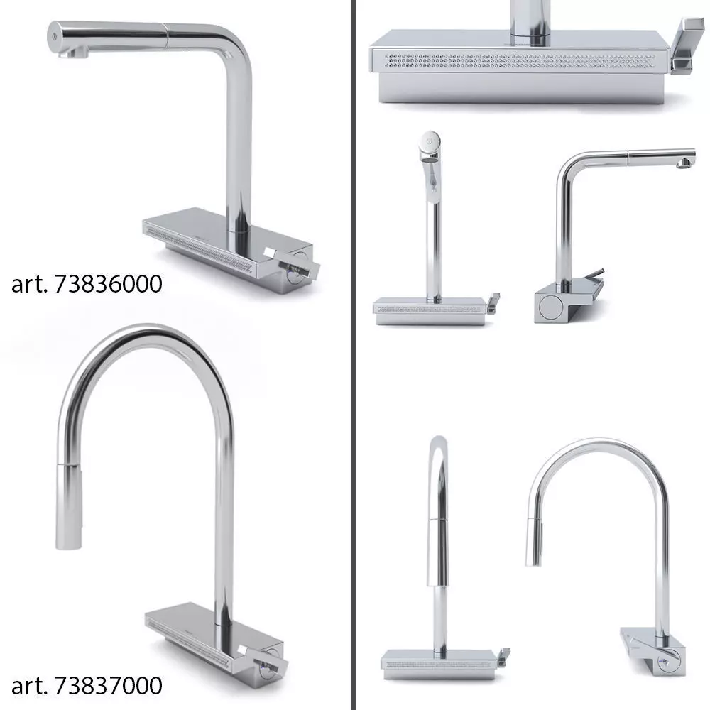 1) Aquno Select M81 Single lever kitchen mixer, 170, with exhaust shower, 3jetArt. 738370002) Aquno Select M81 Single lever kitchen mixer, 250, with exhaust shower, 2jetArt. 73836000In vray version, BRDF materials are installed in Microfacet GTR / GGX, vray 2.4 owners need to install BRDF in Blinn