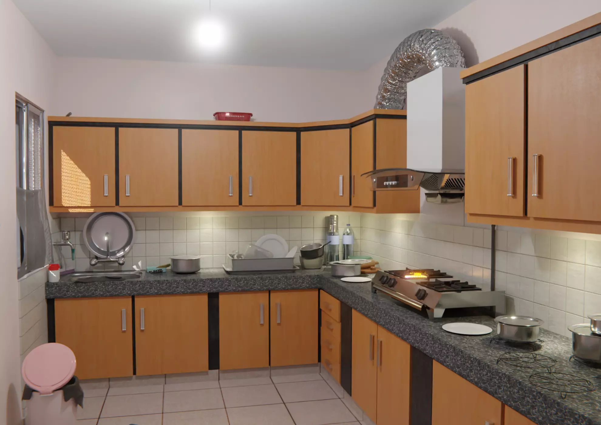 The model has material settings that define how surfaces look (color, shine, transparency, etc.).