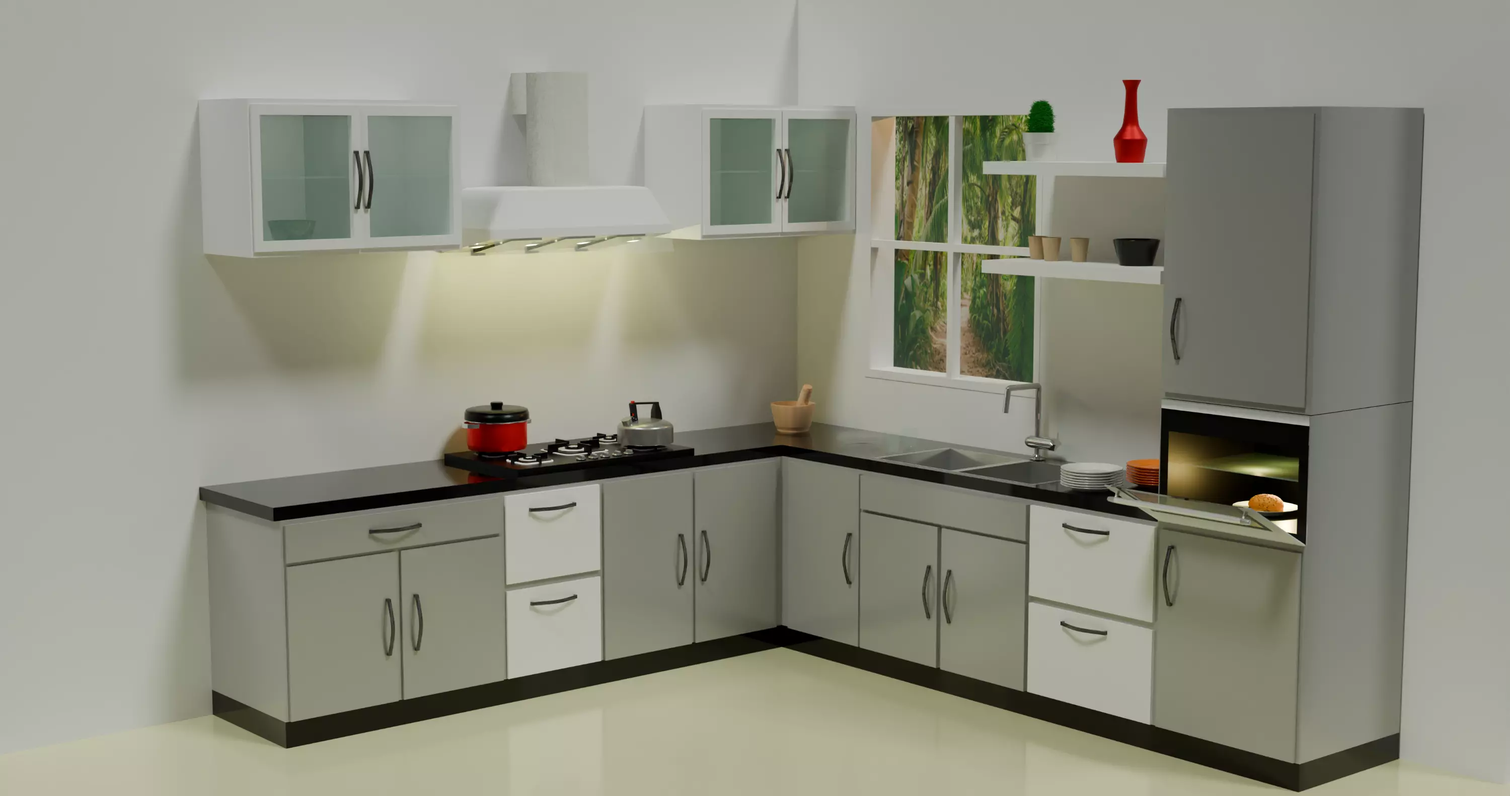 The model has material settings that define how surfaces look (color, shine, transparency, etc.).