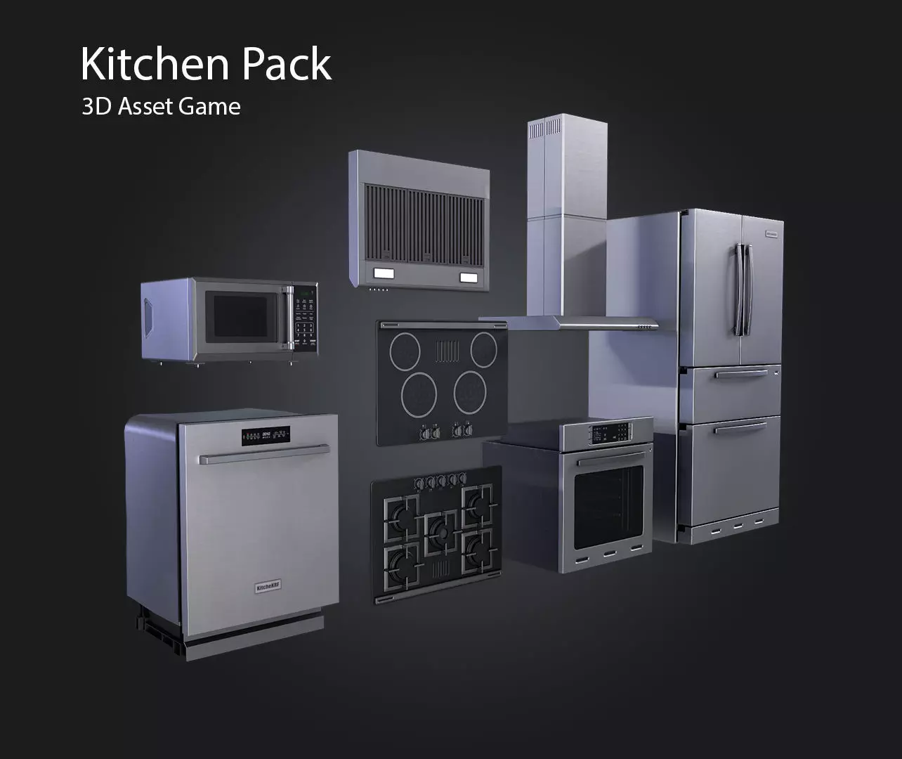 This set consists of 5 kitchen appliances: stove, dishwasher, fridge, kitchen hood and microwave. Highlights that elements such as the kitchen, microwave and dishwasher are not only externally modeled, but also have internal details. This feature adds an additional level of realism and detail to the objects, offering a more complete and authentic representation of these appliances within a kitchen environment.