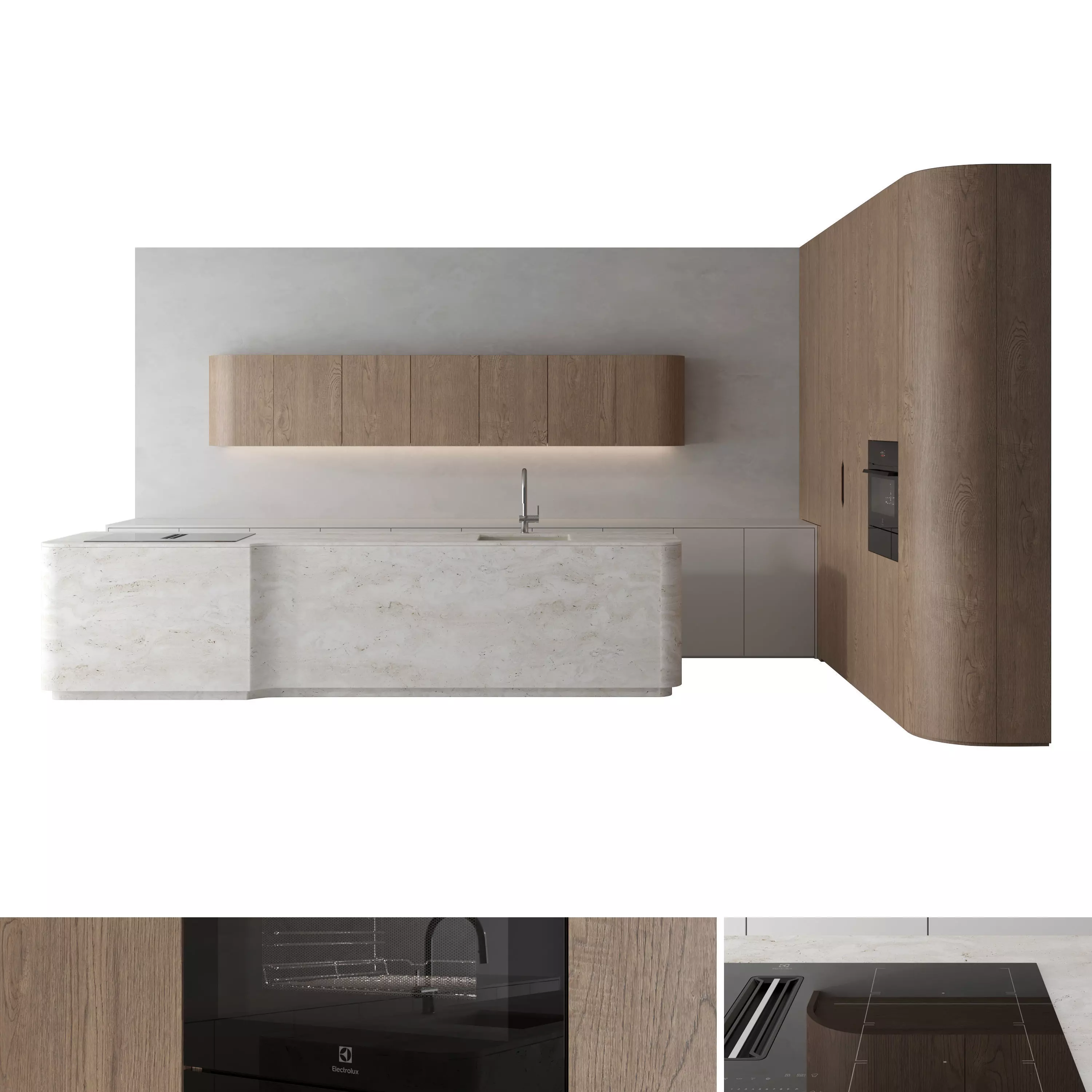 Kitchen appliances: ELECTROLUXSink and mixer tap: FRANKEKitchen size: 5150mm x 2950mm x H.2700mmIsland size: 3500mm x 800mm x H.850mmThe kitchen consists of modules that can be moved.