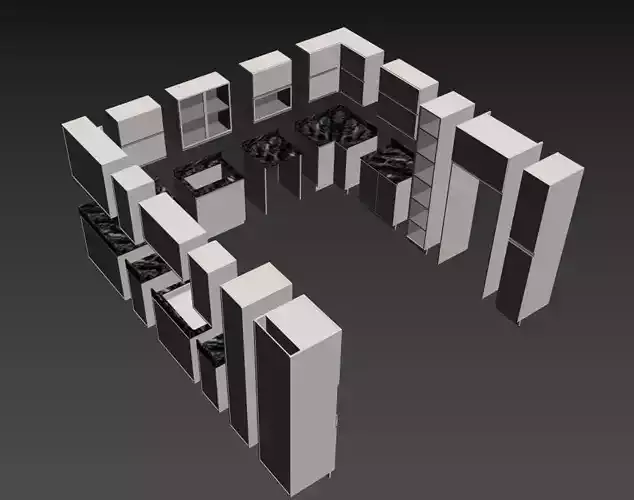 One model, endless possibilities. Configure size, style, and materials to fit your needs instantly.Simply provide your kitchen dimensions and your units will be ready.Various and diverse kitchen unit designs are available, ready for use in your design.
