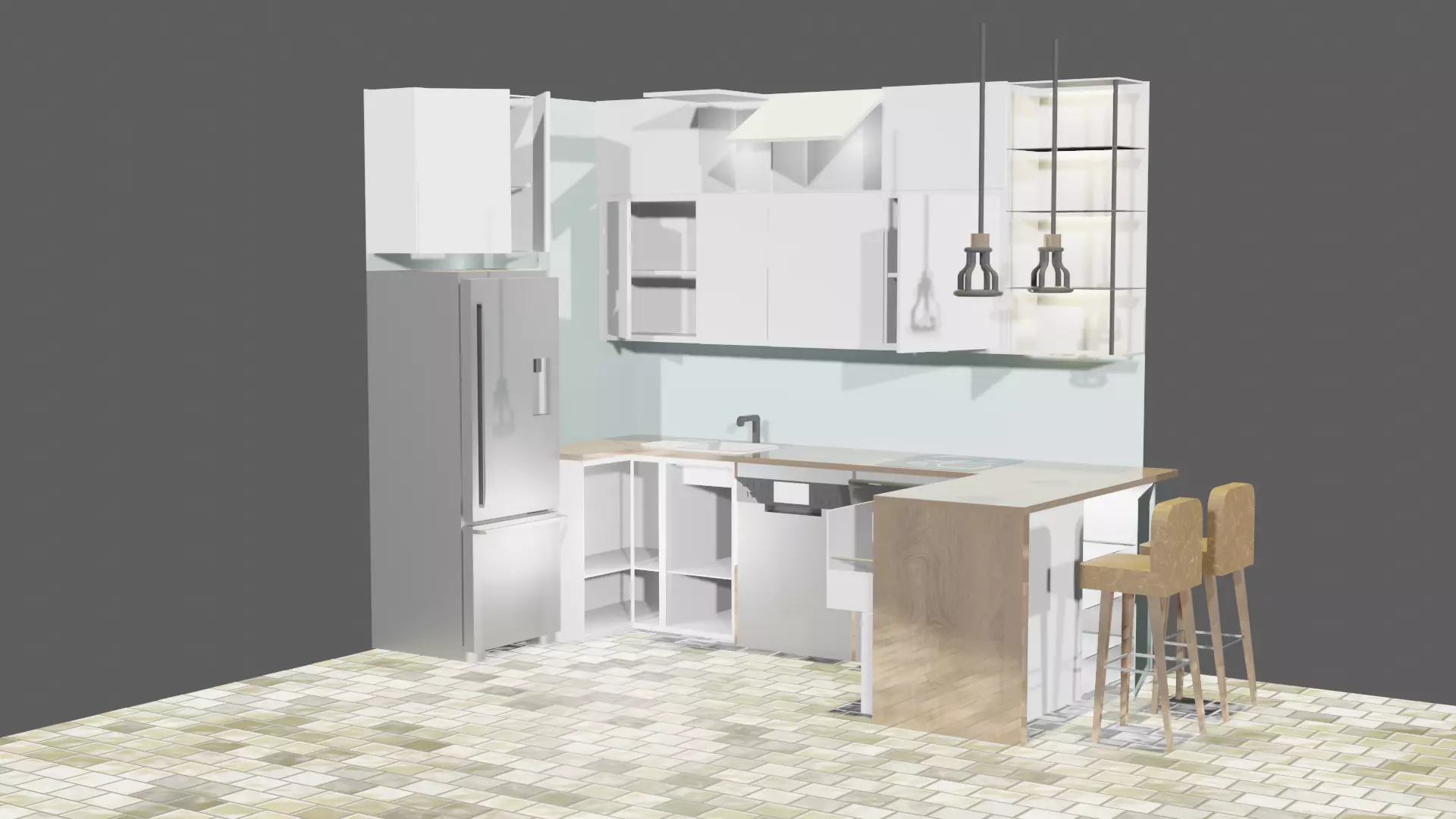The model has material settings that define how surfaces look (color, shine, transparency, etc.).