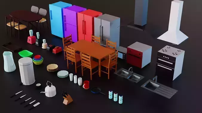 FBXOBJSTLblend file(native)(whole kitchen set)-ready to render in cyclesblend file(kitchen isometric room)-ready to render in cycles