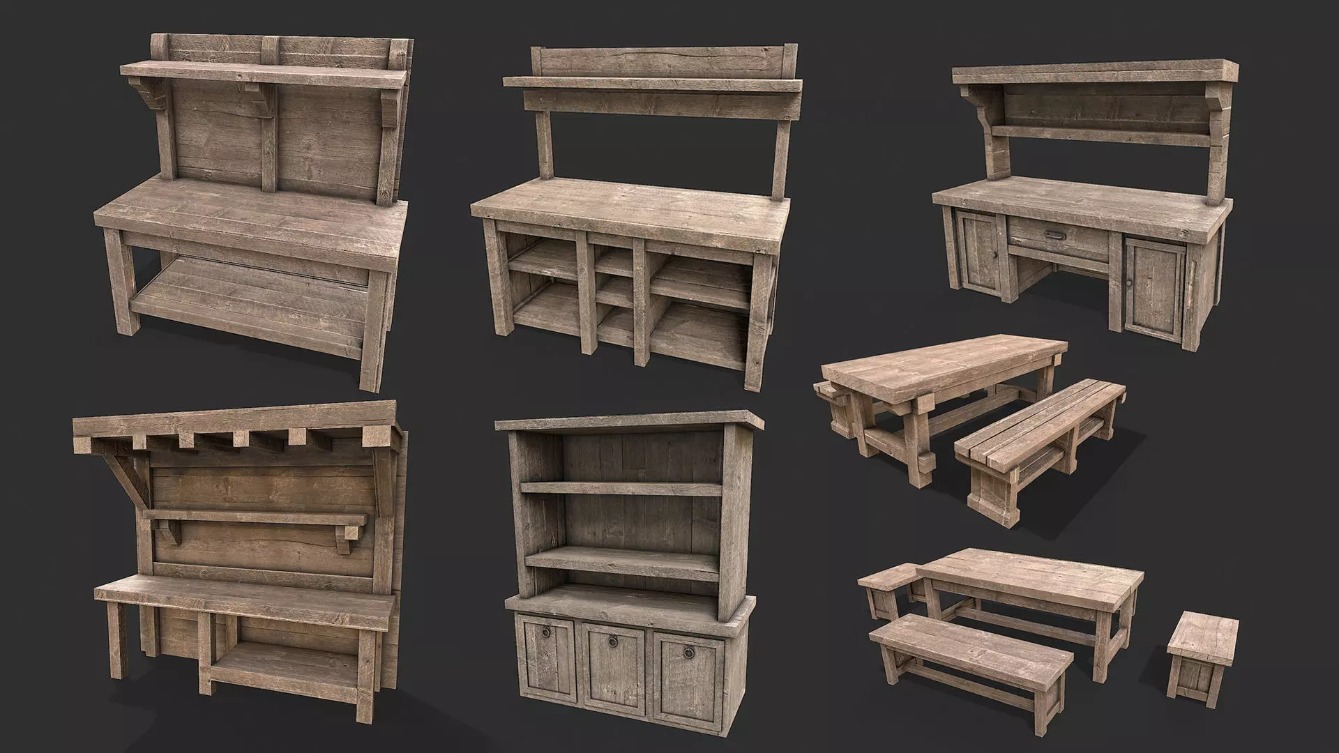This pack is part of the Medieval Environment Props Collection, a modular asset series designed to help create detailed medieval environments for games, cinematics, and visualization projects.