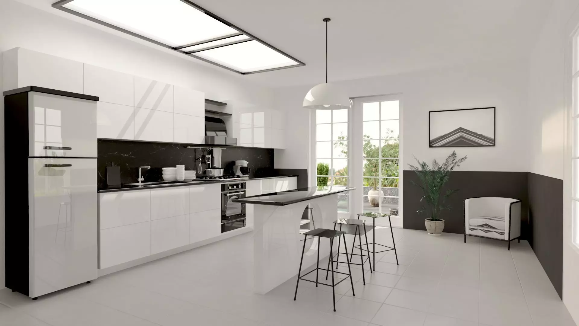 The model has material settings that define how surfaces look (color, shine, transparency, etc.).