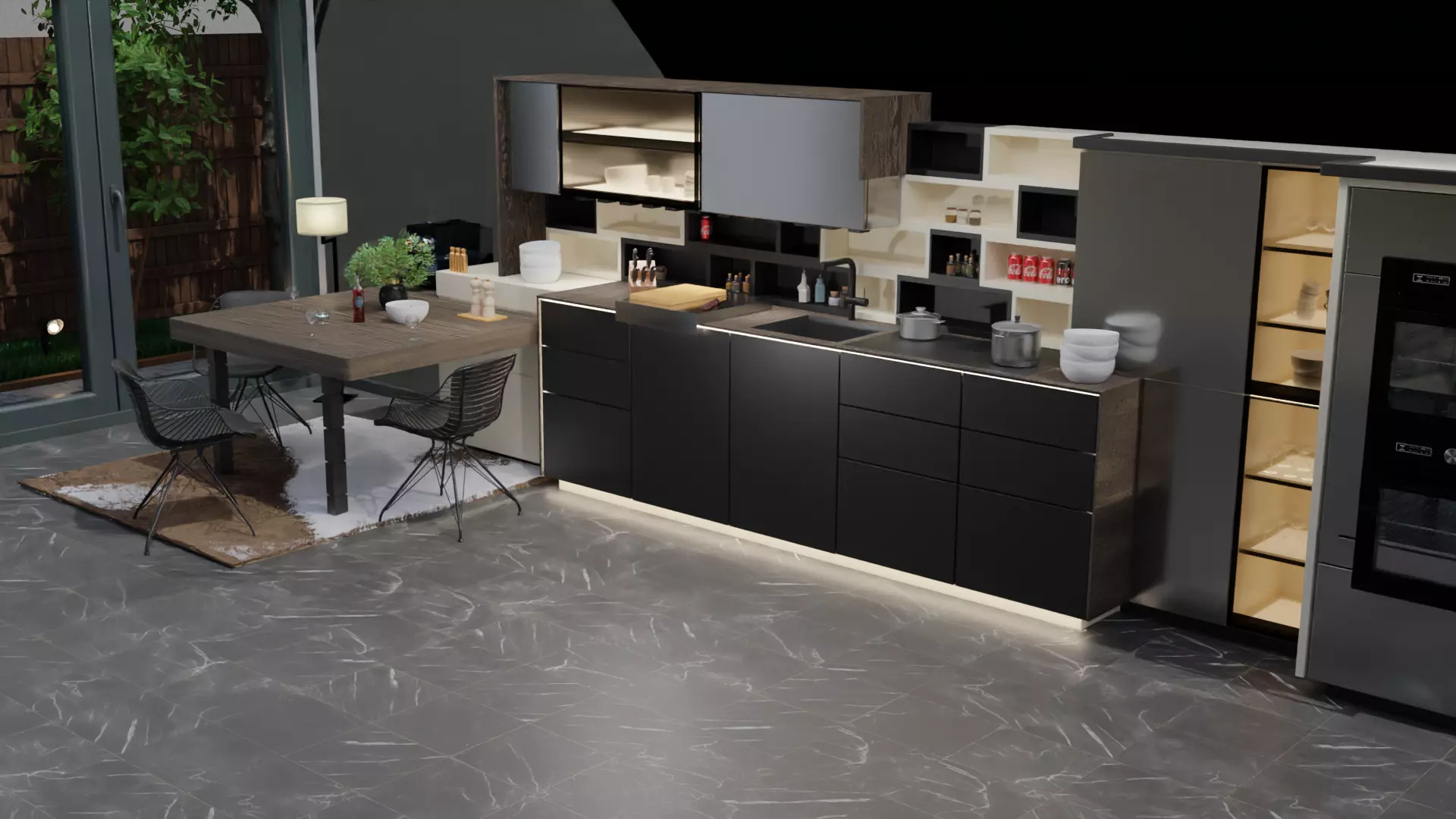 The model has material settings that define how surfaces look (color, shine, transparency, etc.).