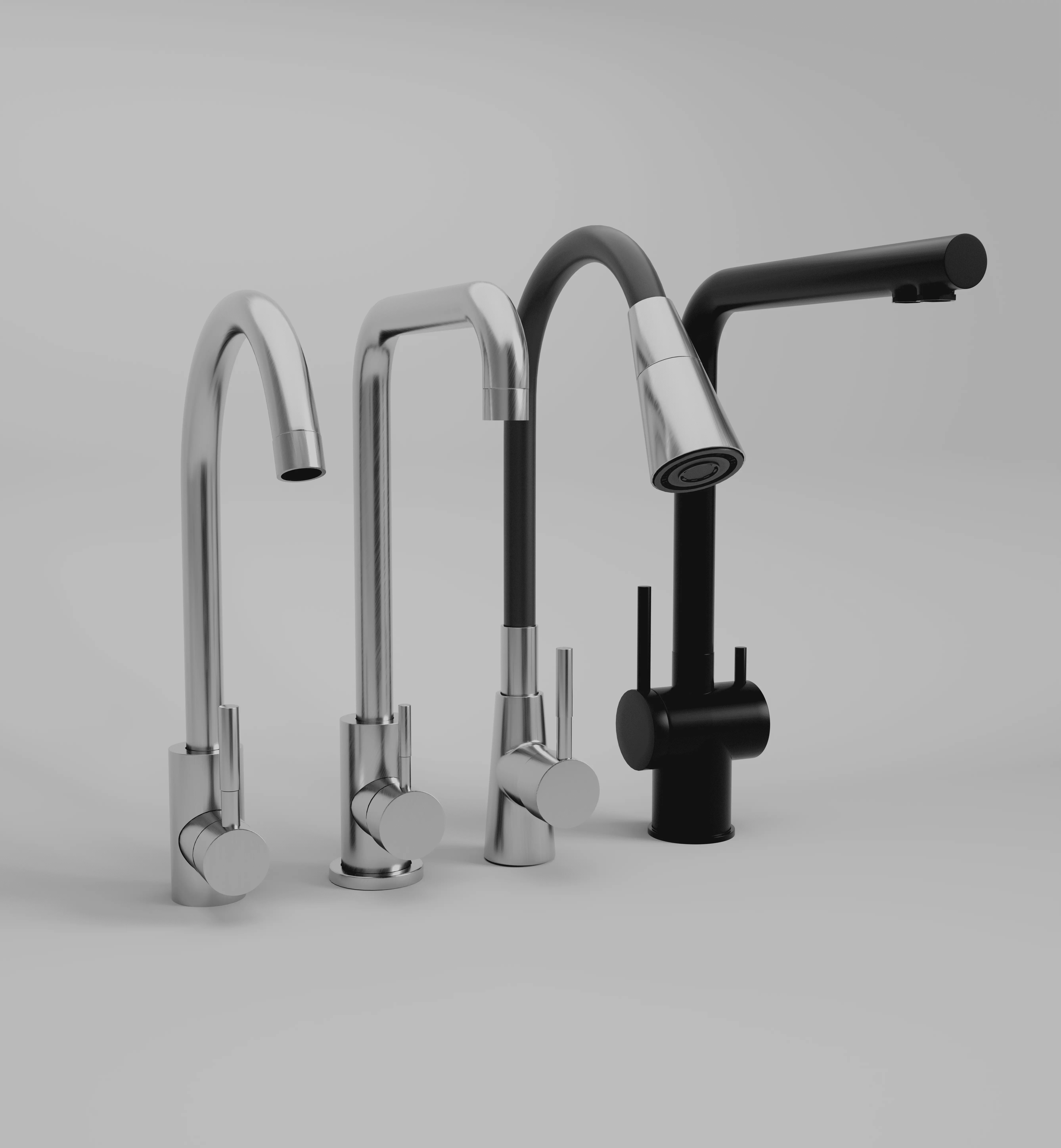 Flawless Reflections & Materials: The PBR (Physically Based Rendering) materials are finely tuned for realistic metal surfaces (chrome, brushed steel, or matte black). This ensures the faucet reacts naturally to your HDRI and studio lighting setups.